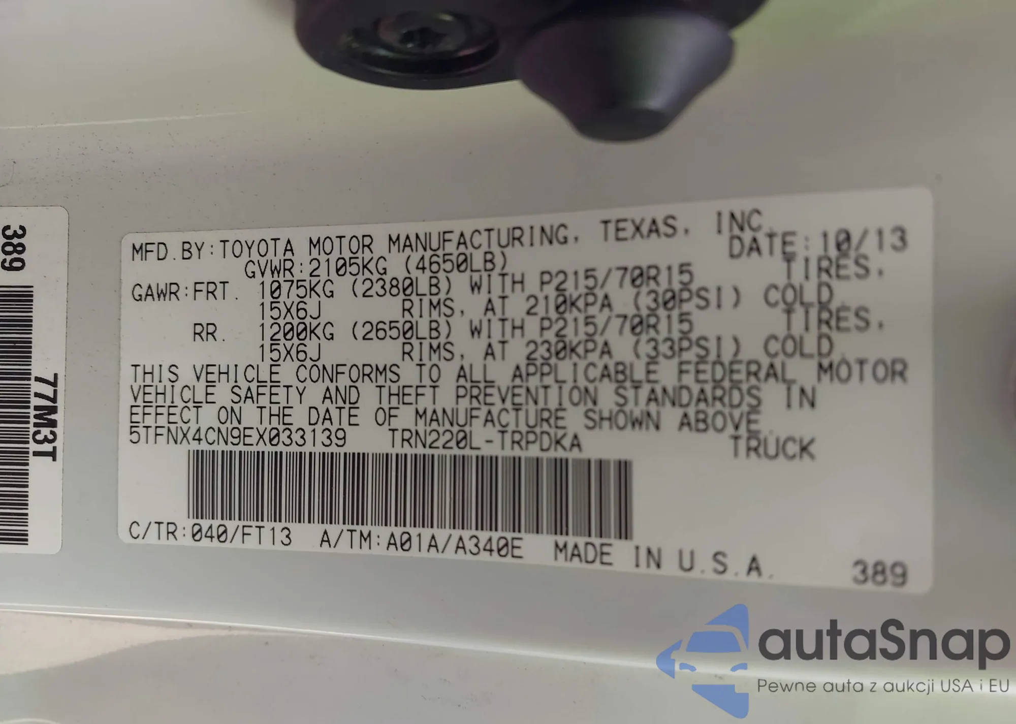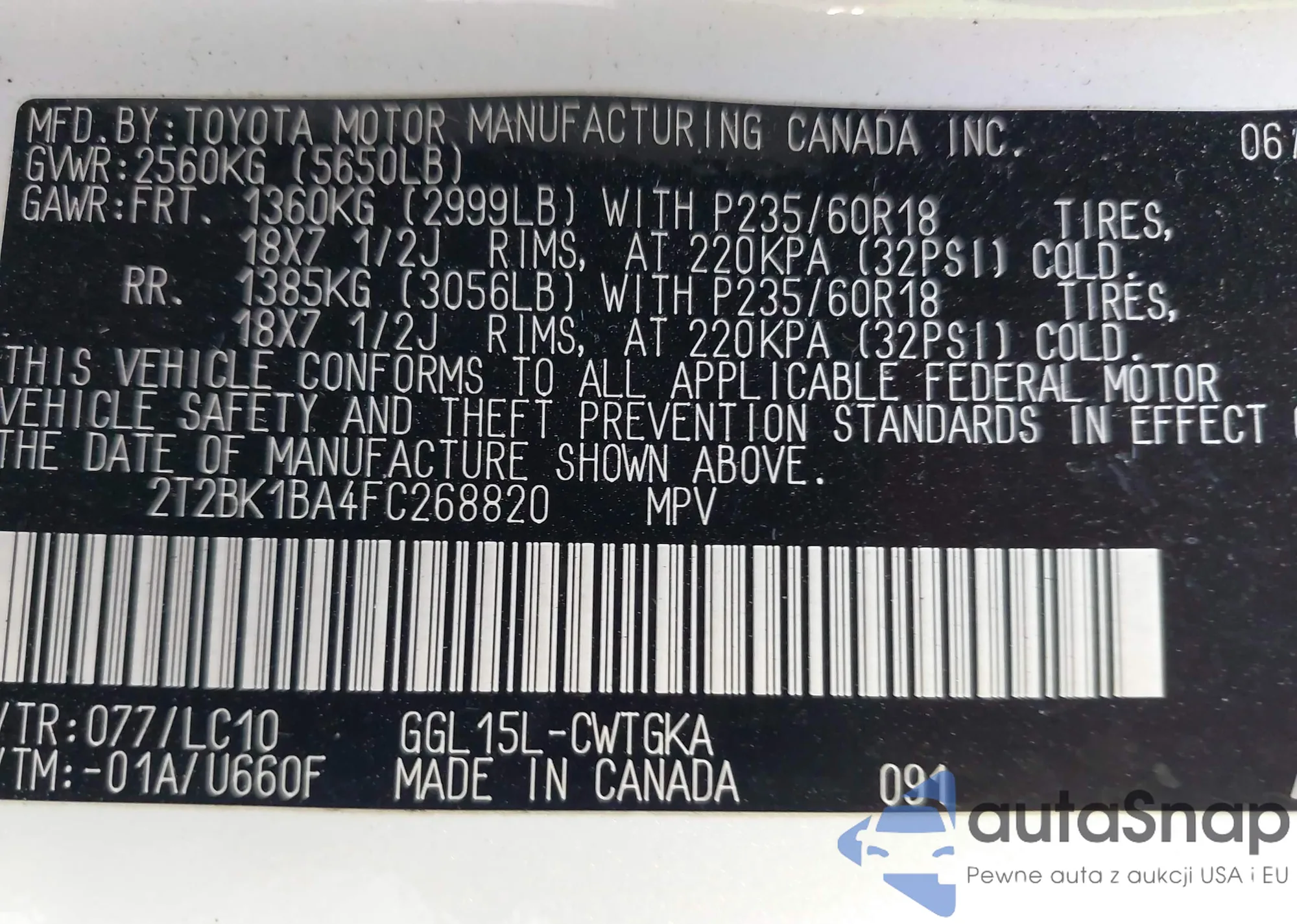 • VIN 2T2BK1BA4FC268820