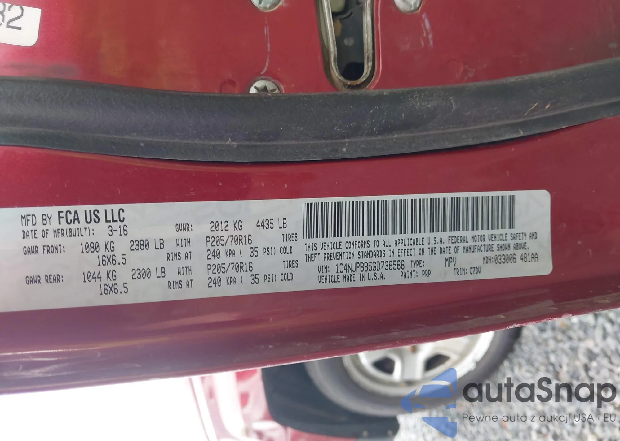 • VIN 1C4NJPBB5GD738566