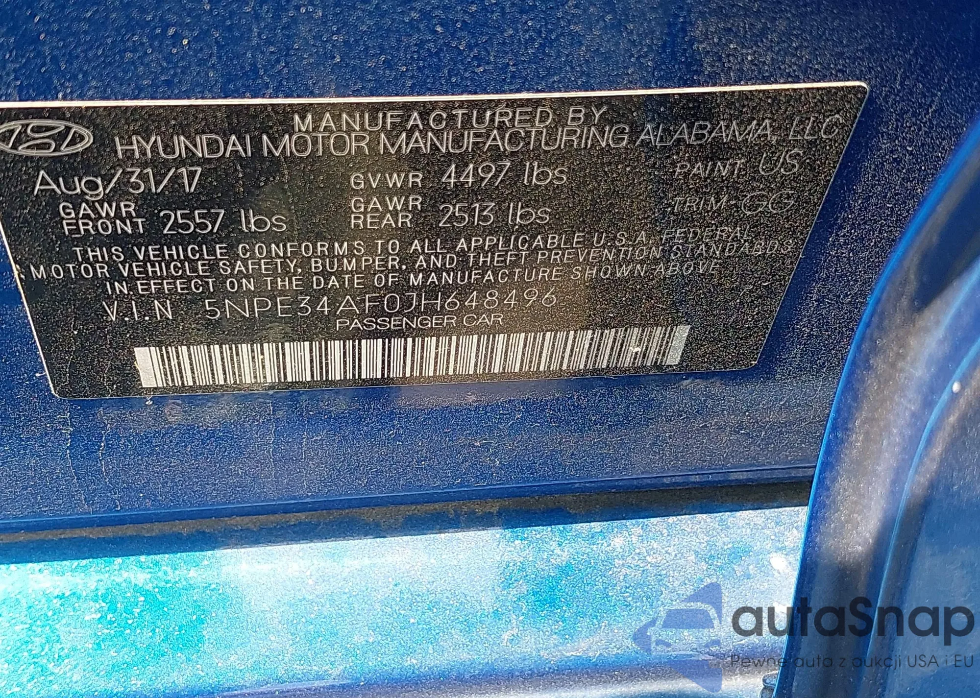 • VIN 5NPE34AF0JH648496