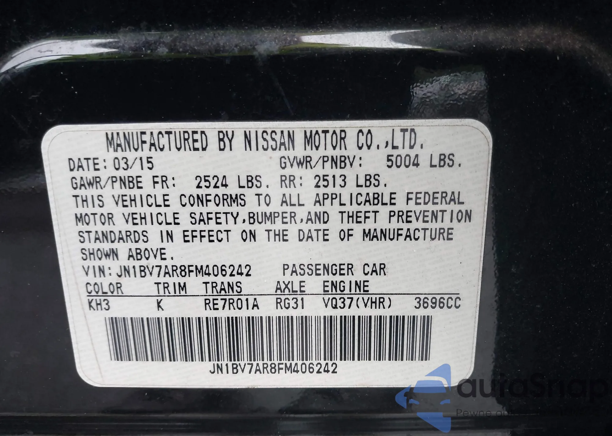 • VIN JN1BV7AR8FM406242