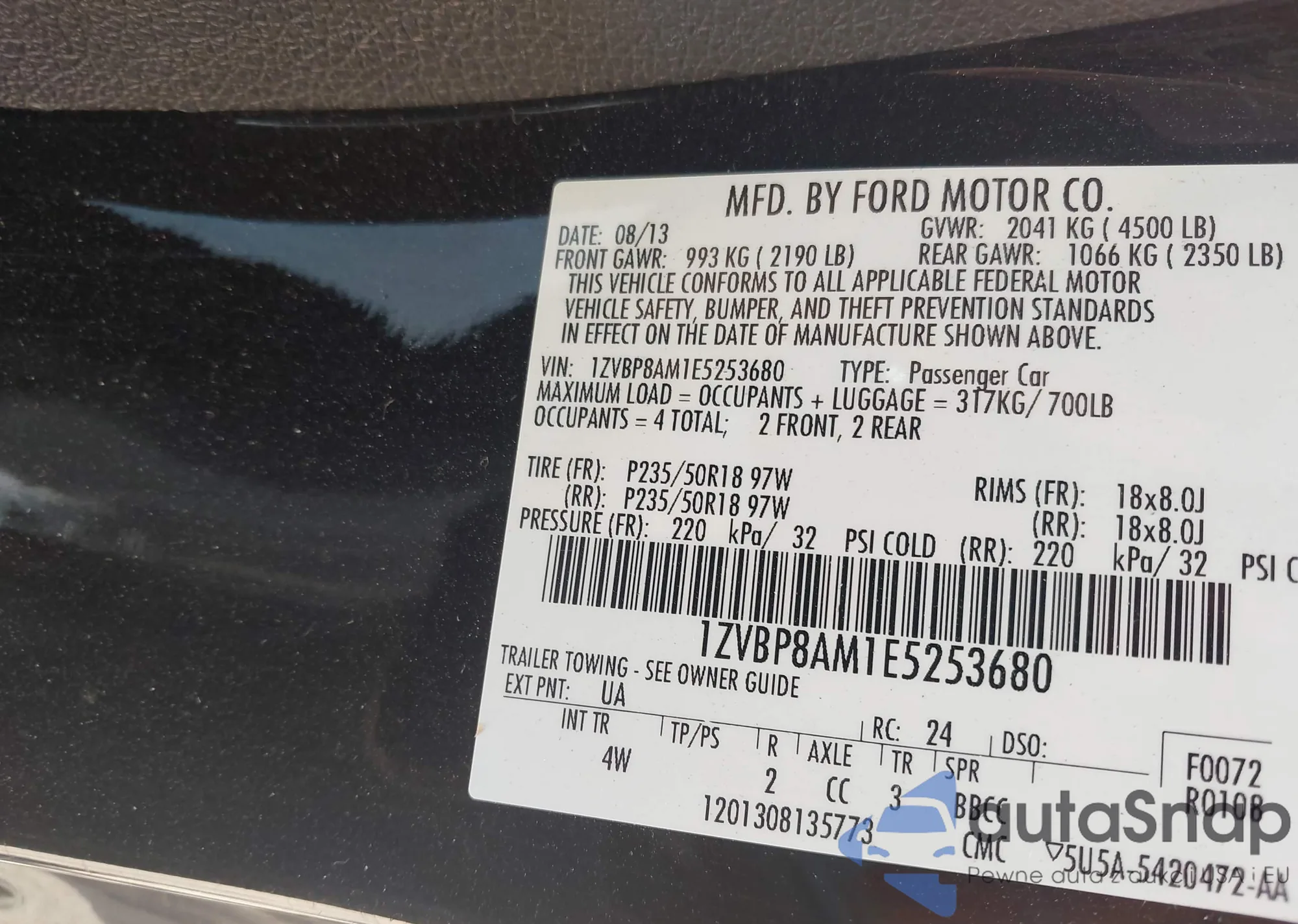 • VIN 1ZVBP8AM1E5253680