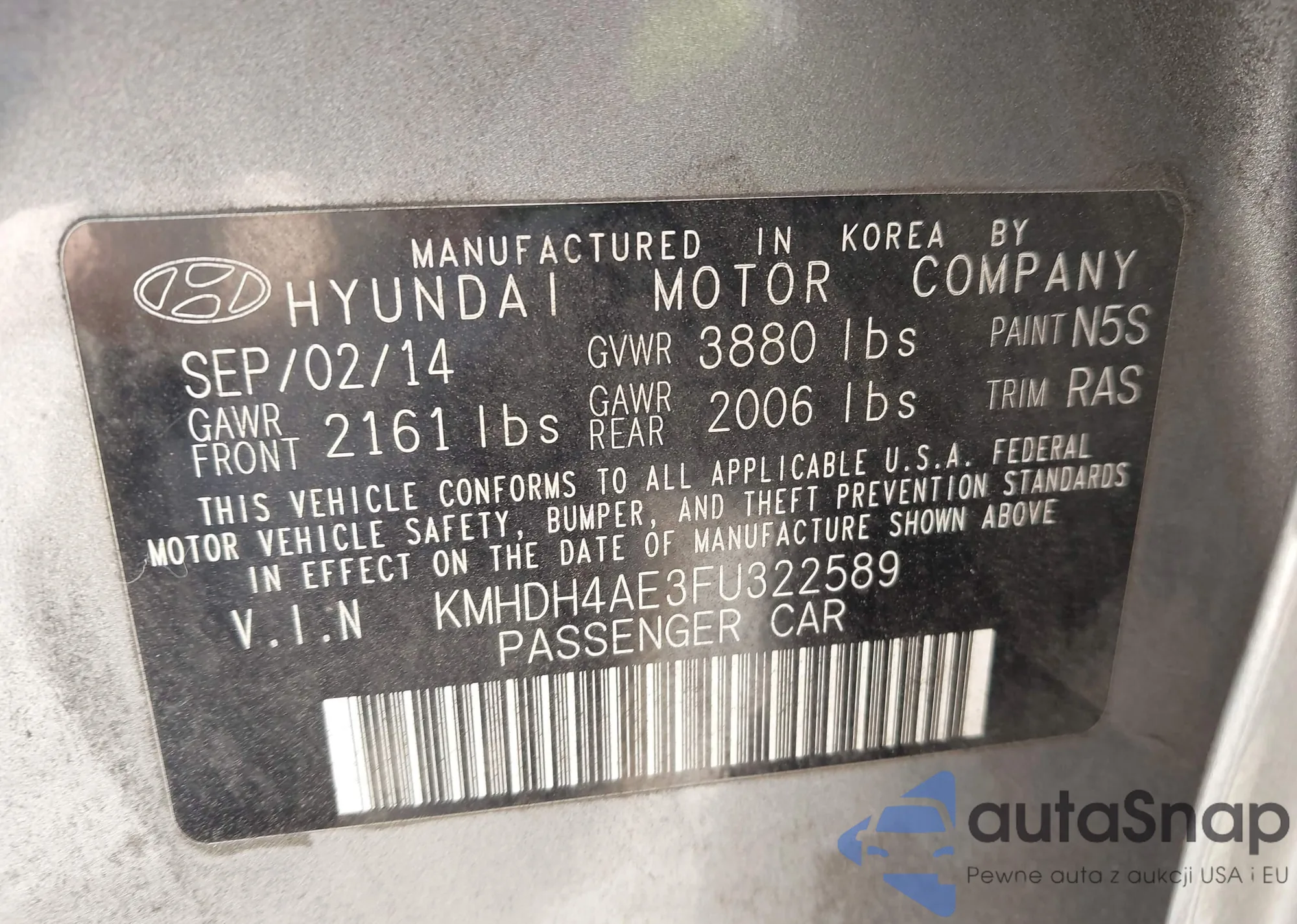 LOT: 43038269 VIN: KMHDH4AE3FU322589
