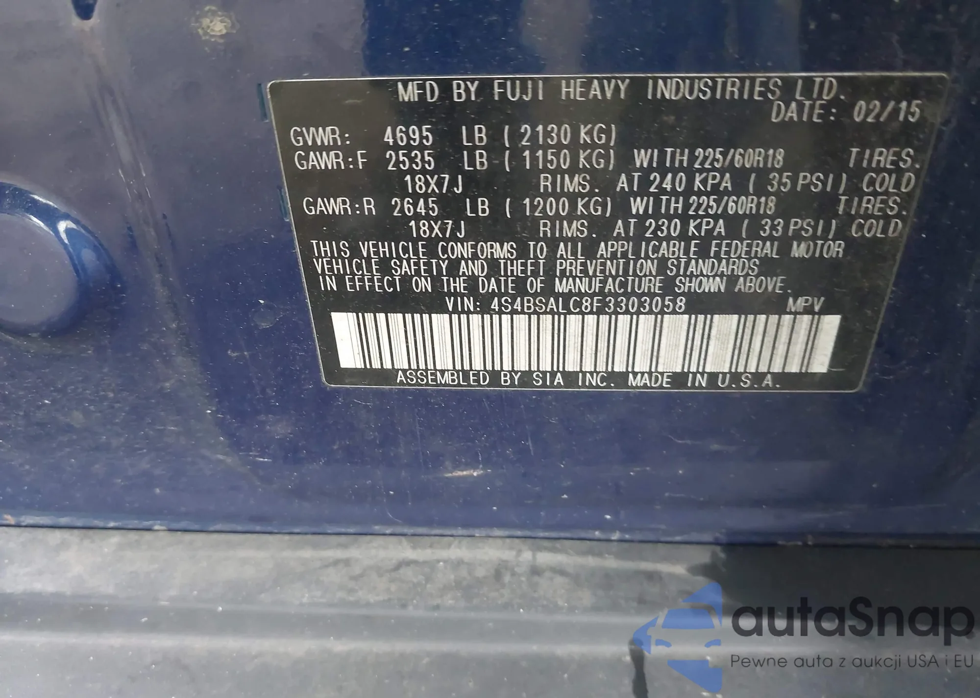• VIN 4S4BSALC8F3303058