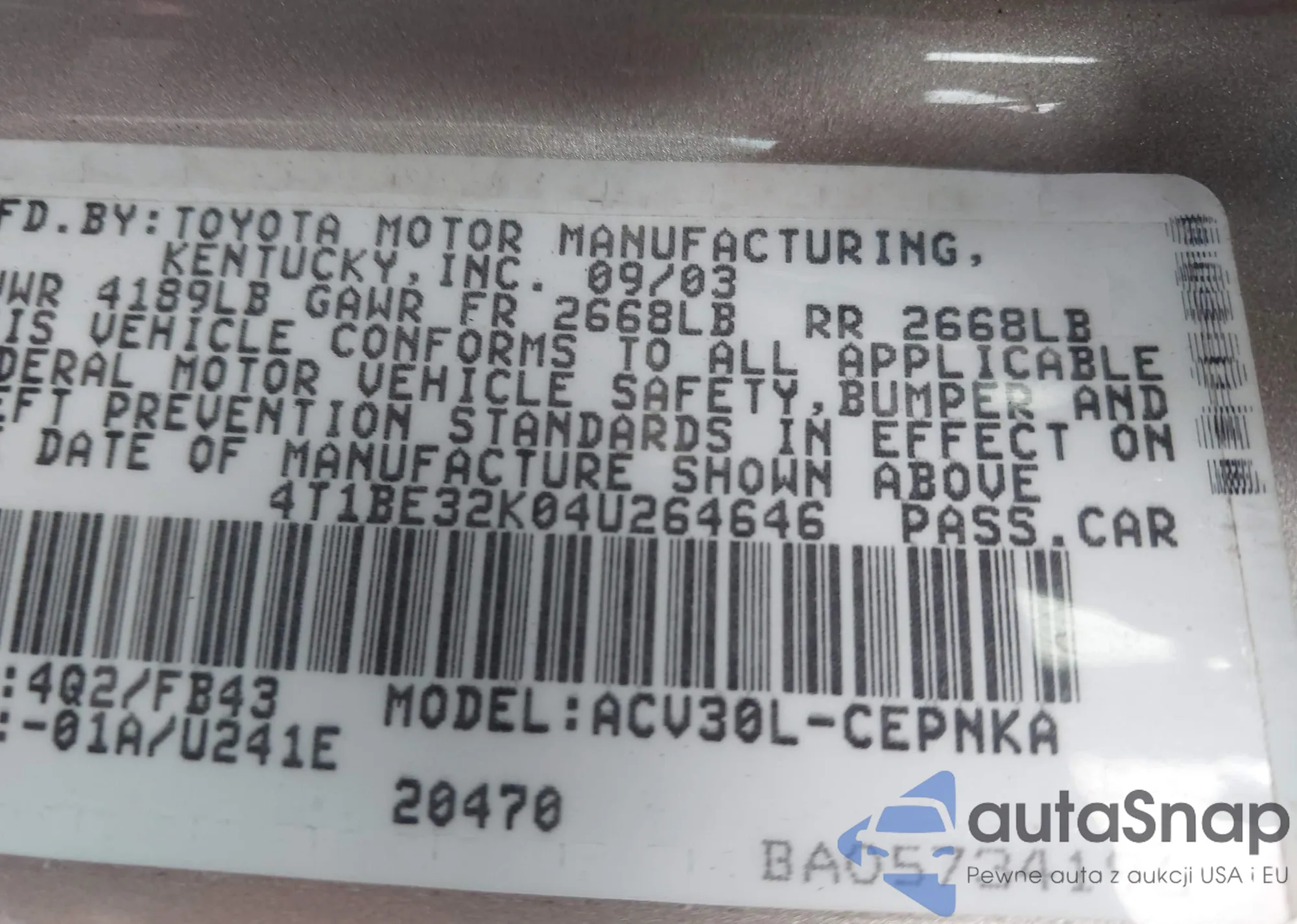 • VIN 4T1BE32K04U264646
