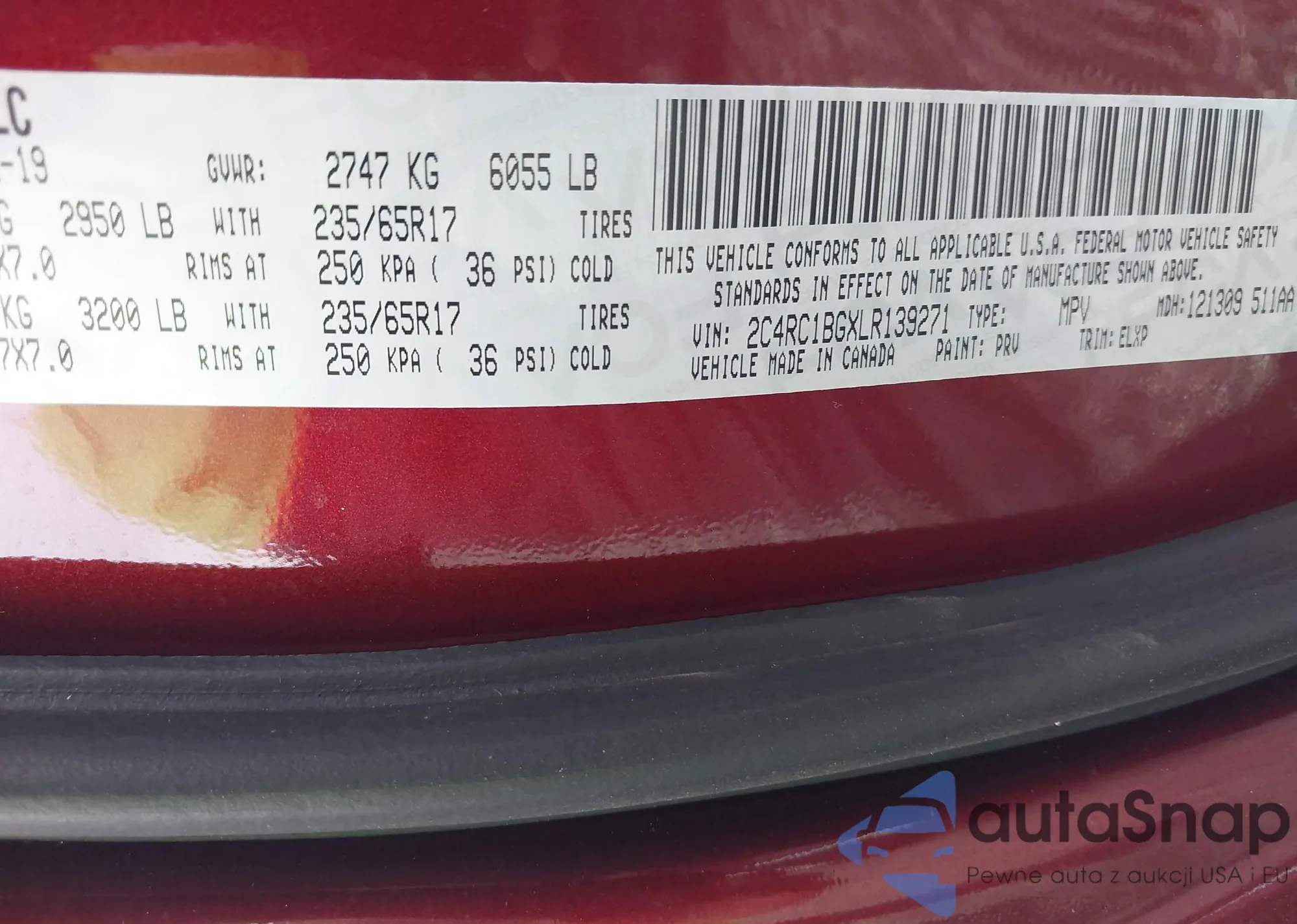 • VIN 2C4RC1BGXLR139271