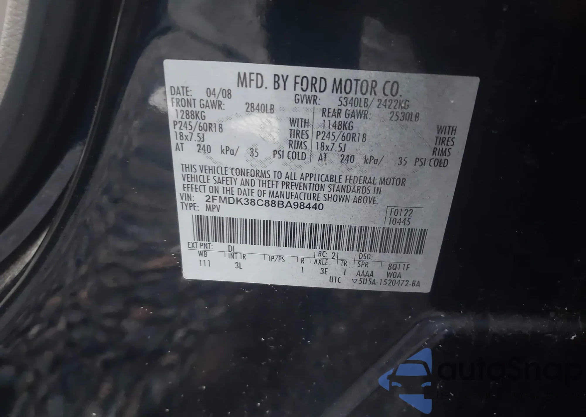 • VIN 2FMDK38C88BA98440