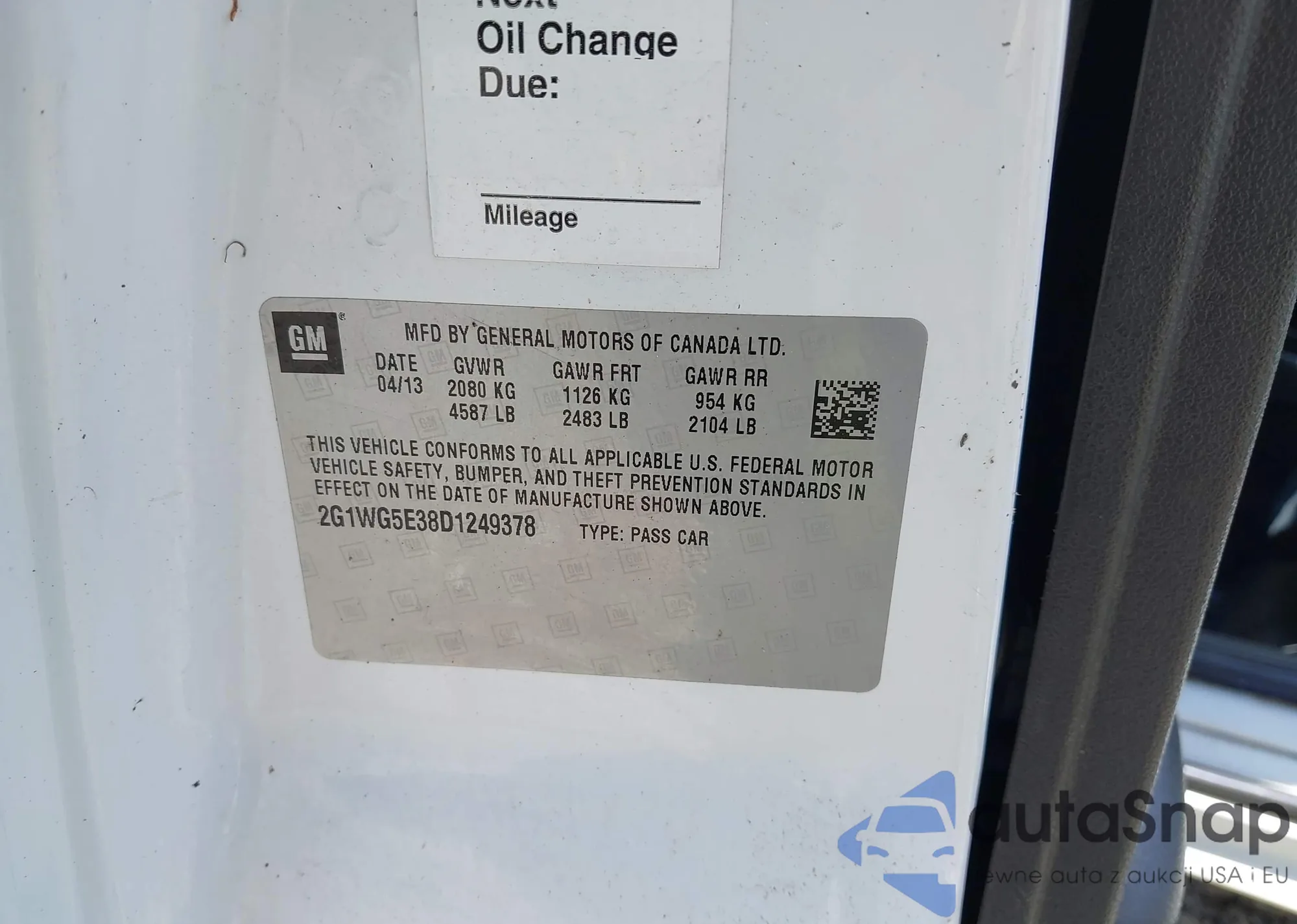 • VIN 2G1WG5E38D1249378
