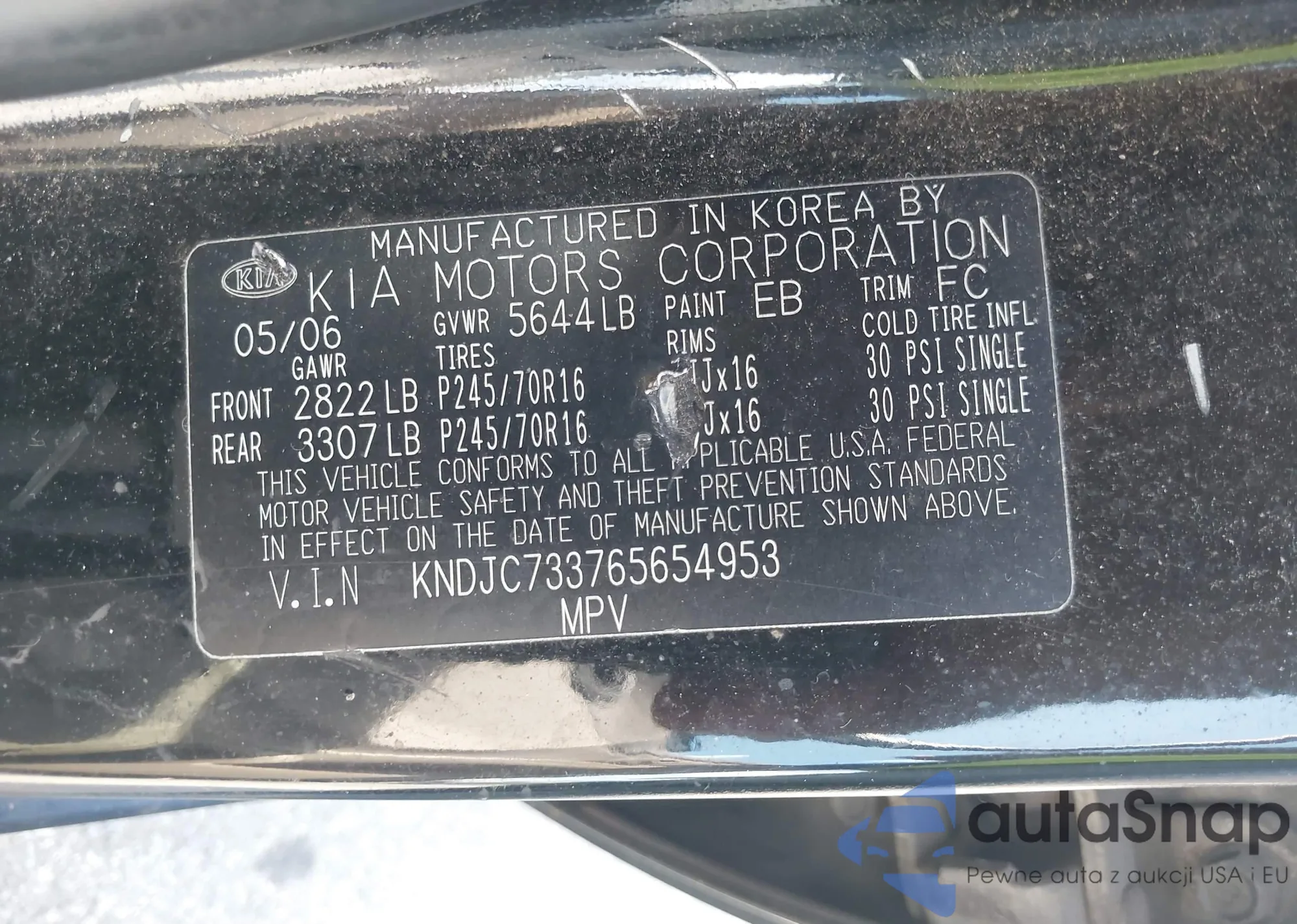 LOT: 42939595 VIN: KNDJC733765654953