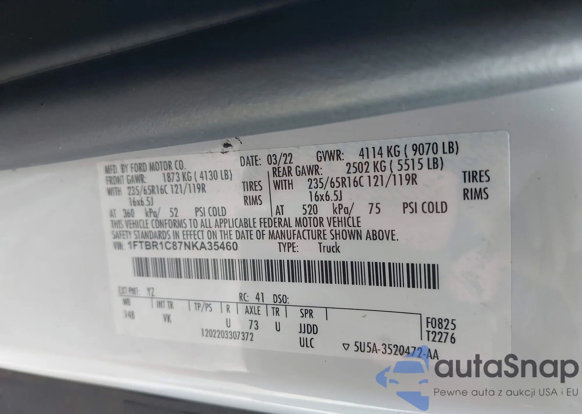 • VIN 1FTBR1C87NKA35460
