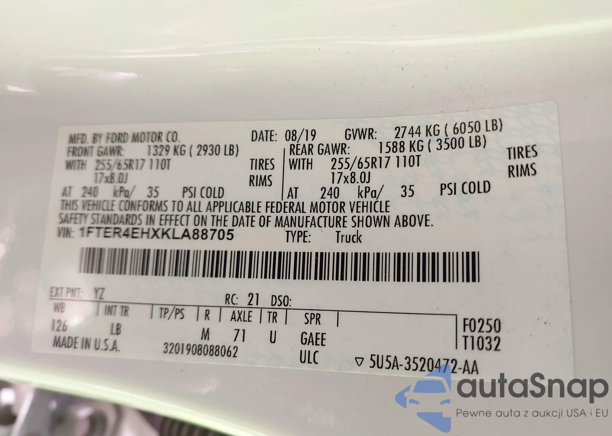 LOT: 43146750 VIN: 1FTER4EHXKLA88705