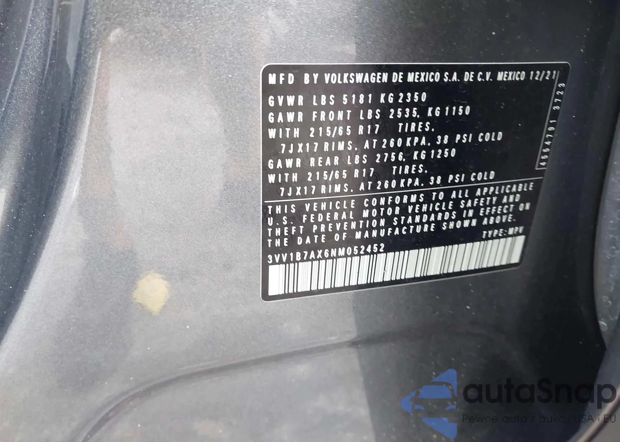 • VIN 3VV1B7AX6NM052452