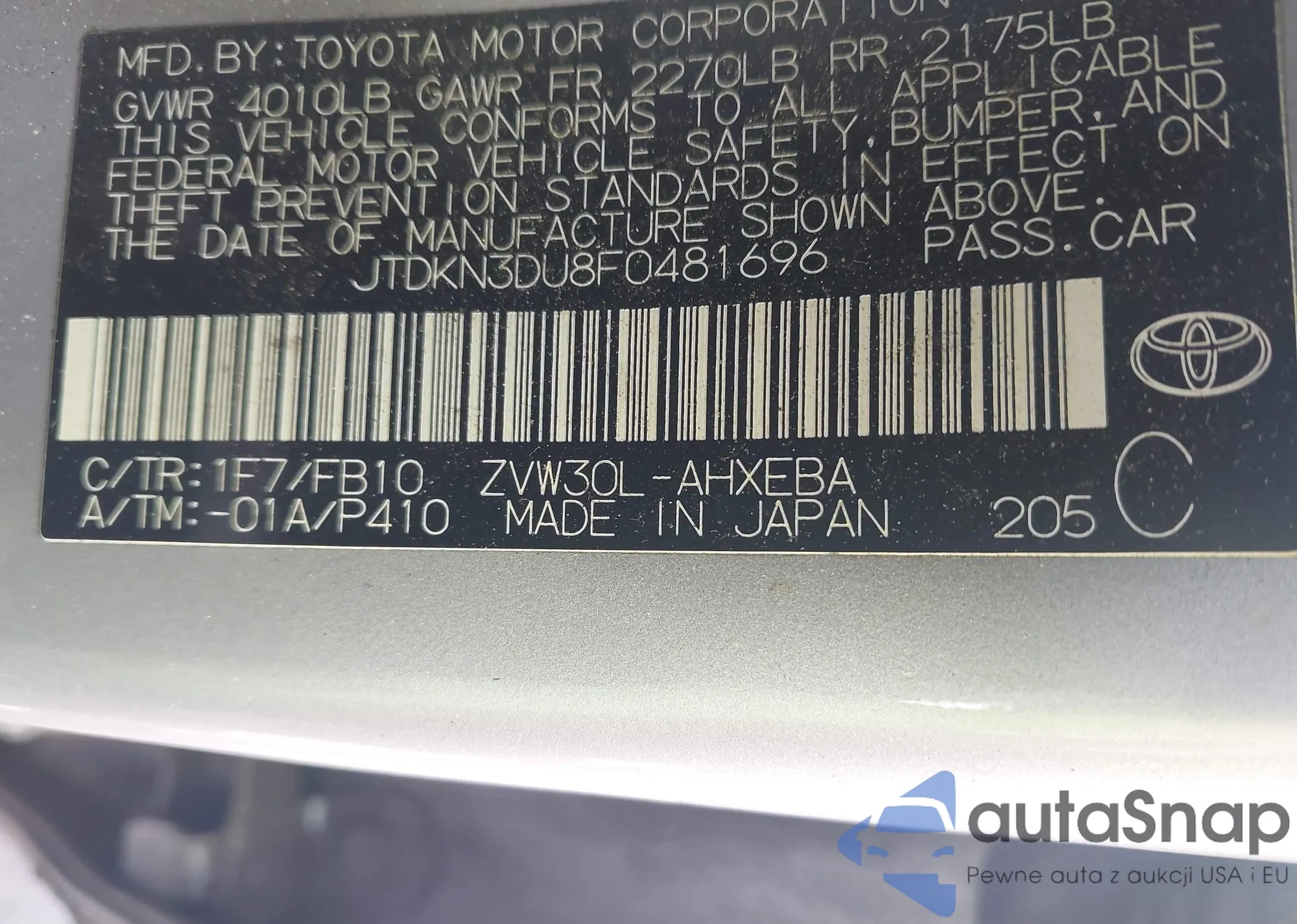 • VIN JTHBL5EF1B5102146