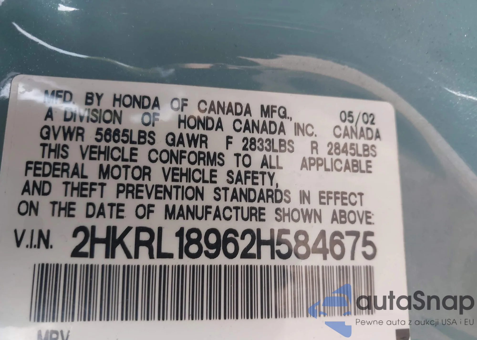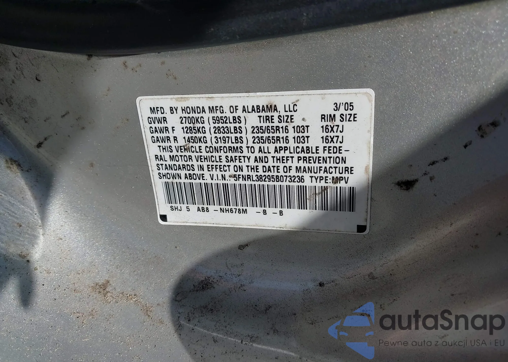 LOT: 43202819 VIN: 5FNRL38295B073236