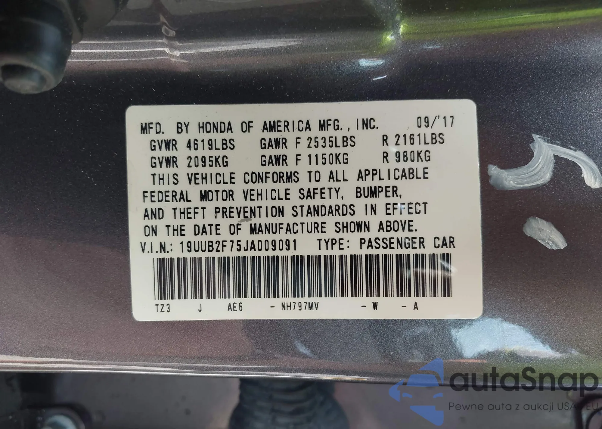 • VIN 19UUB2F75JA009091
