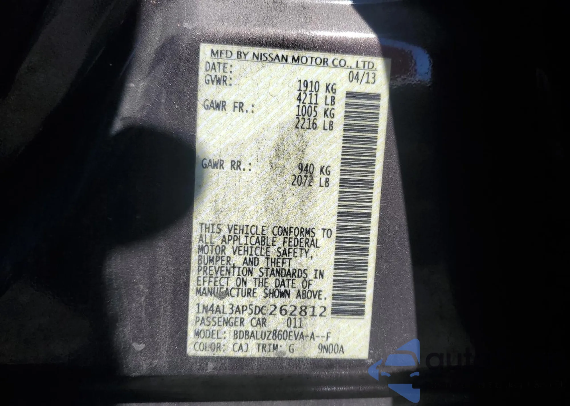 LOT: 80754425 VIN: WBAPH7G51ANM47858