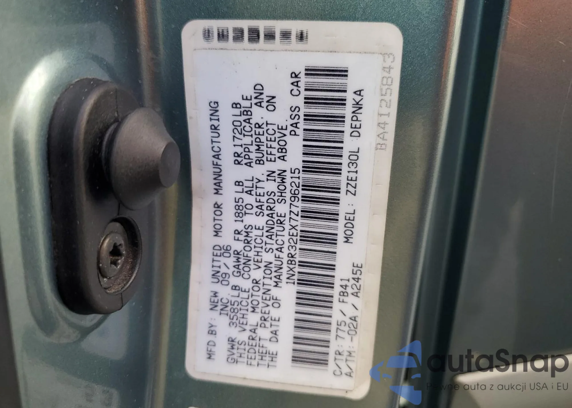 • VIN 1NXBR32EX7Z796215