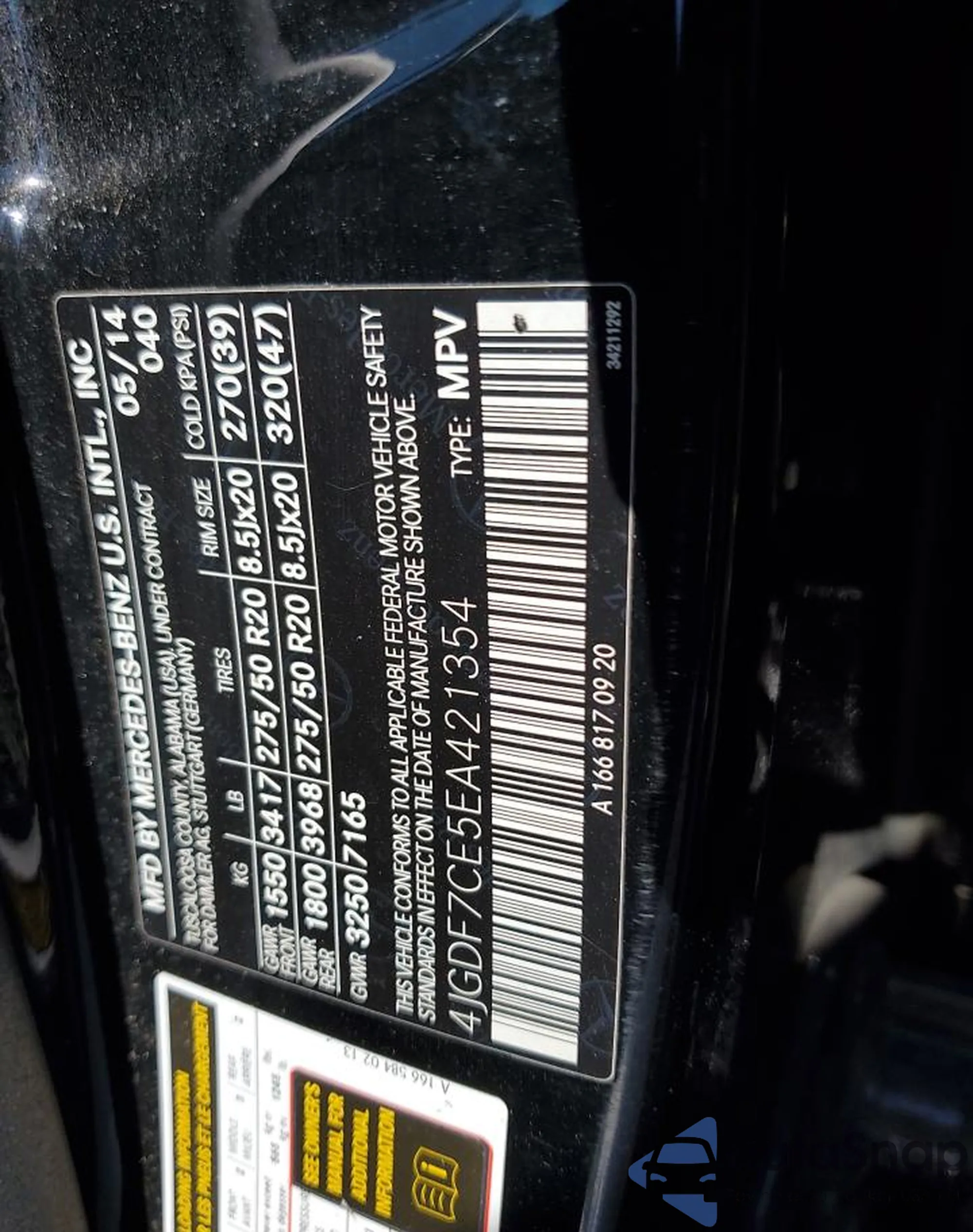 • VIN 4JGDF7CE5EA421354