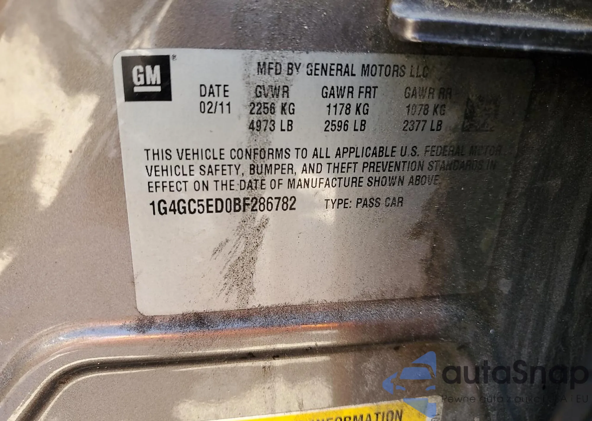 • VIN 1G4GC5ED0BF286782