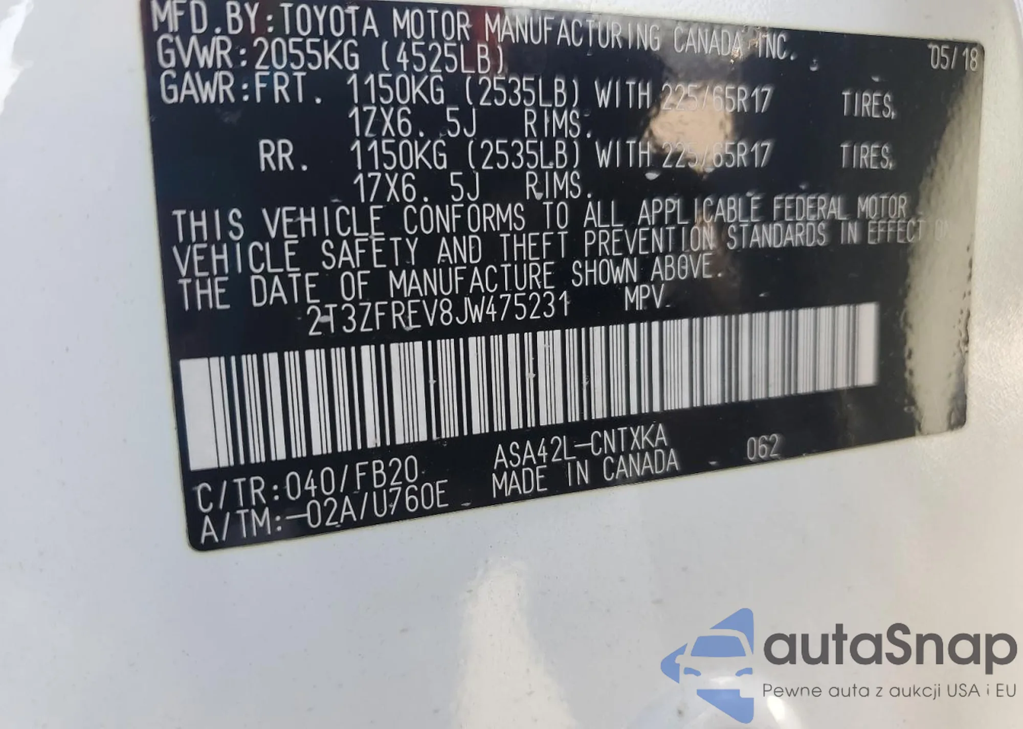 LOT: 70568895 VIN: 1FMCU9J97JUC99446
