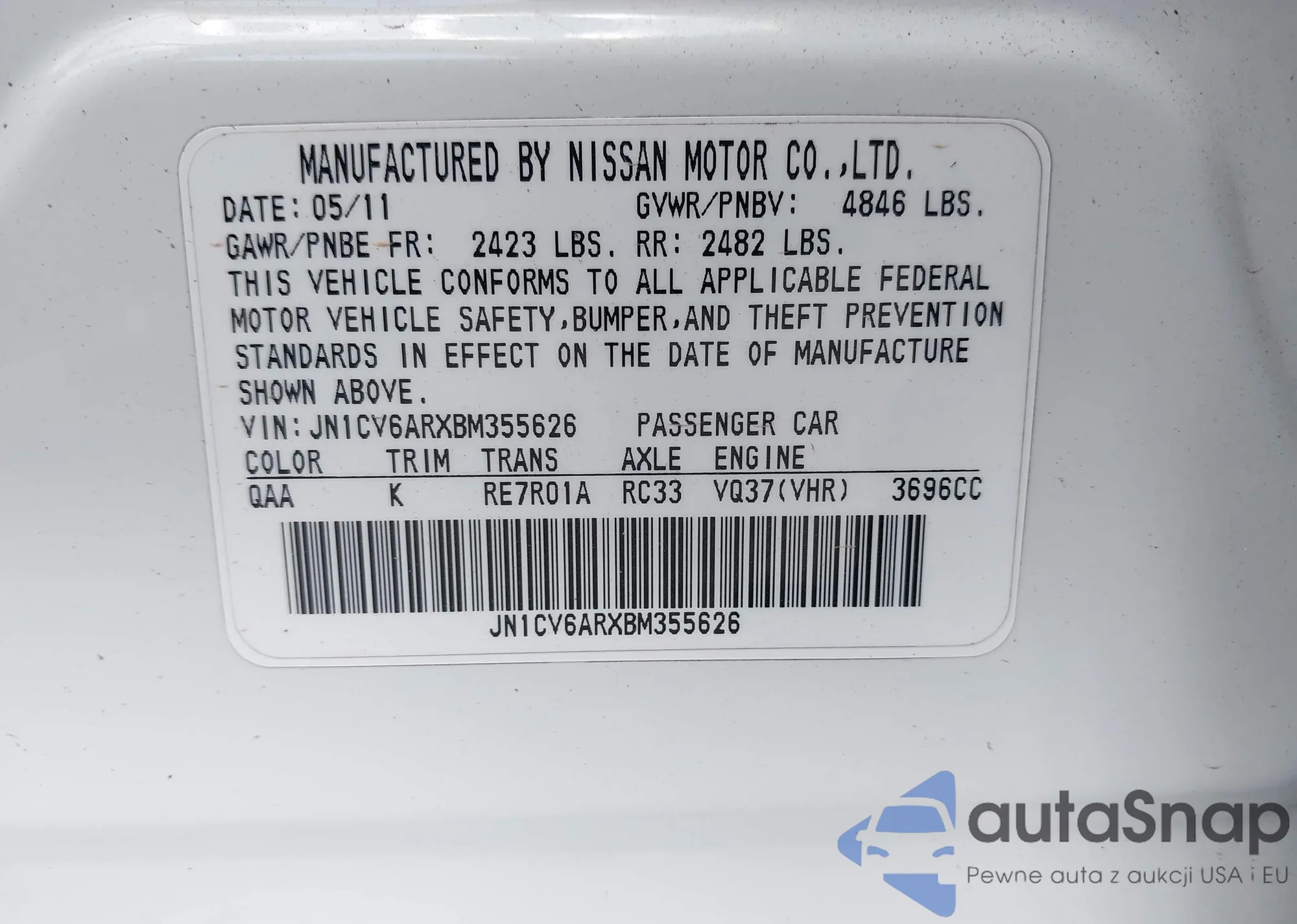 • VIN 1HGCP26349A178721