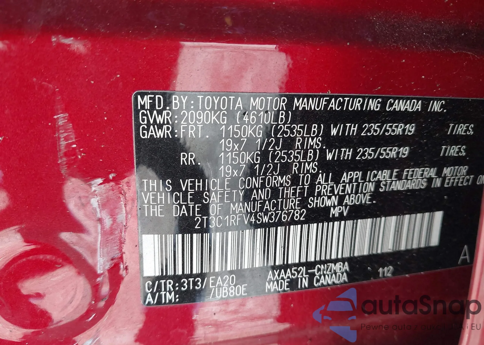 • VIN 2T3C1RFV4SW376782