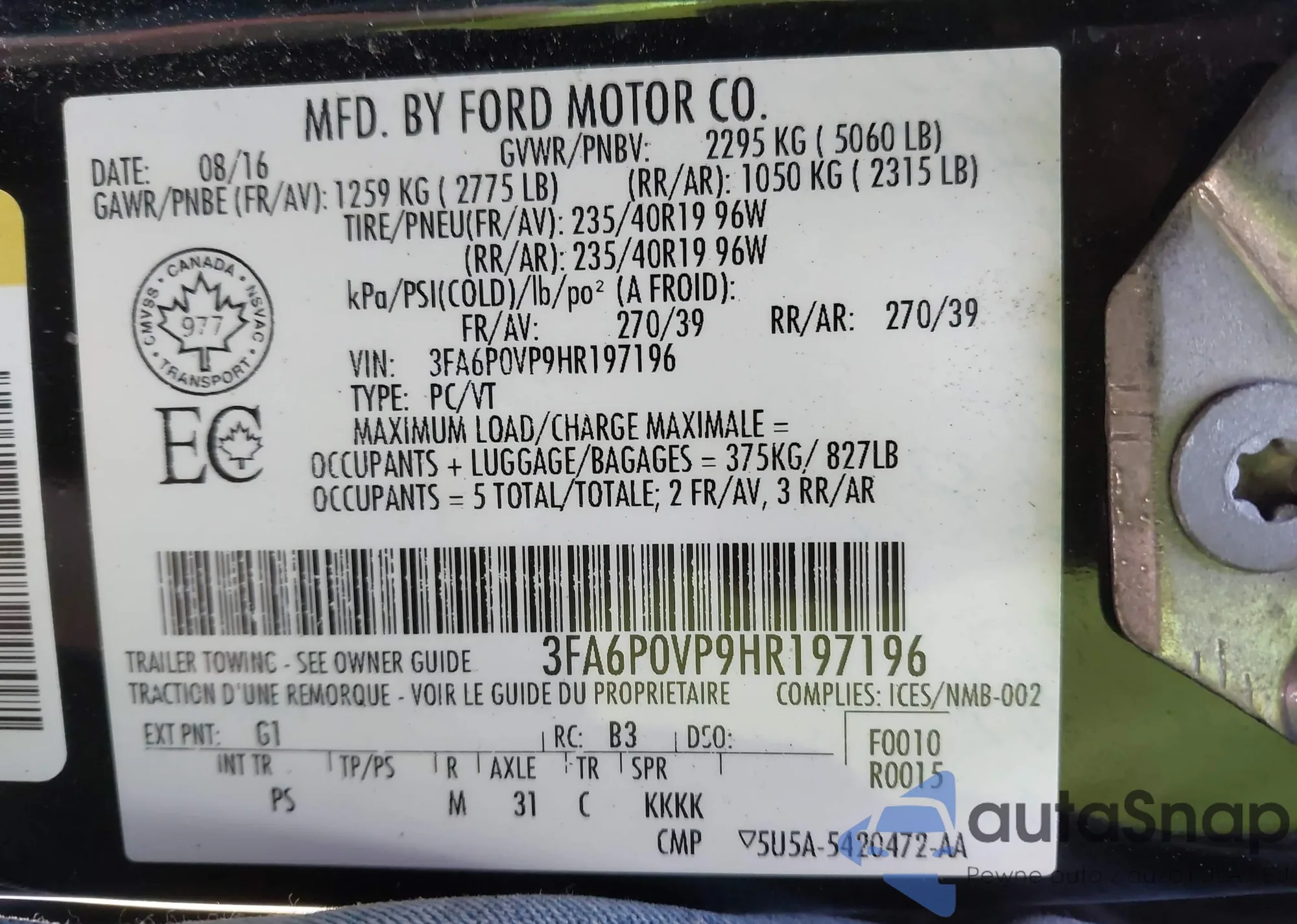 • VIN 4T1BE32K75U504342