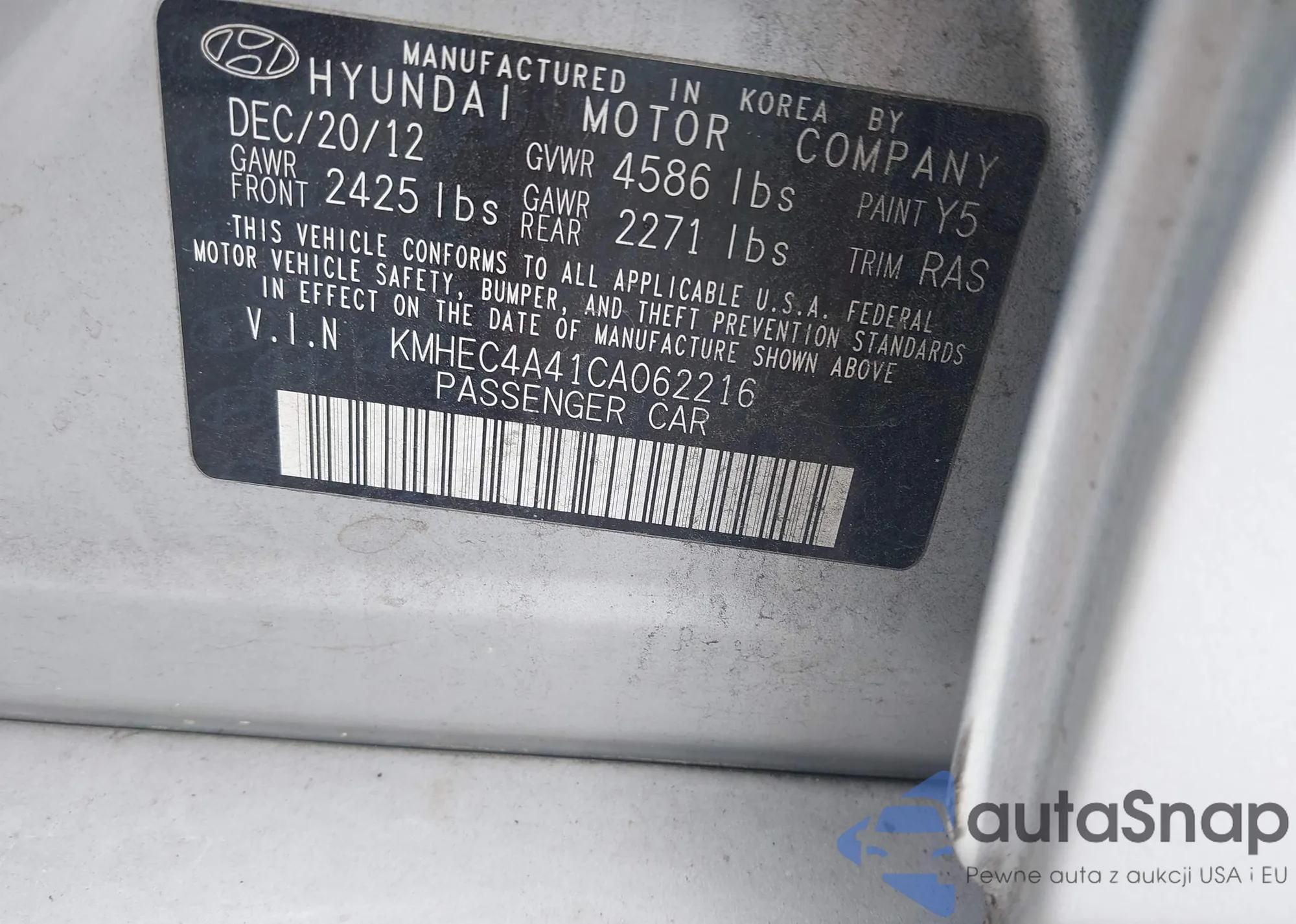 LOT: 43115615 VIN: KMHEC4A41CA062216