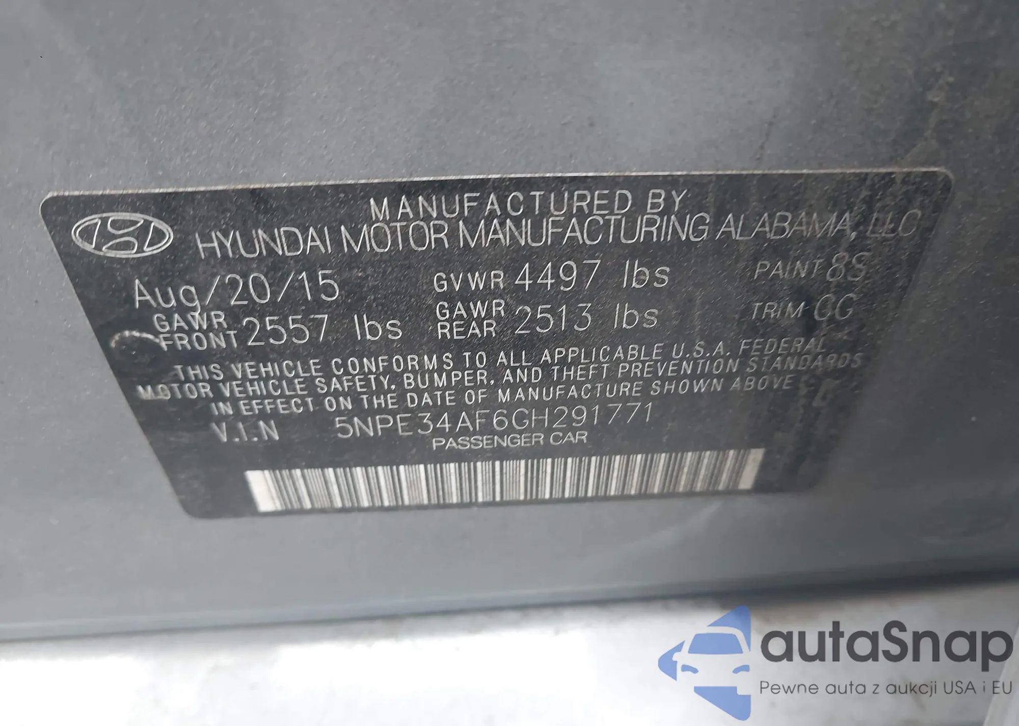 LOT: 43315424 VIN: KM8SC73E84U777987