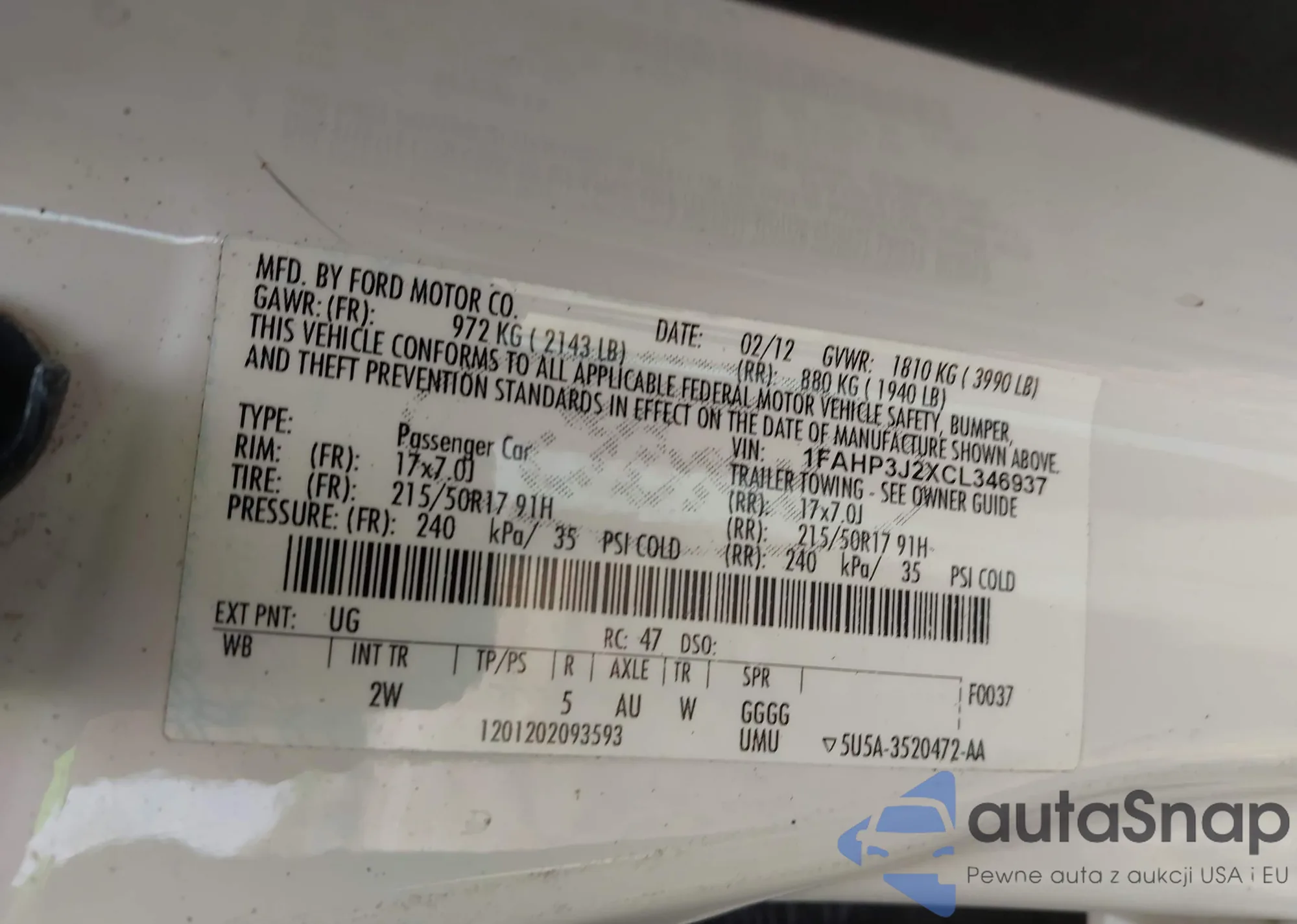 LOT: 43332780 VIN: 4T1BE32K75U504342