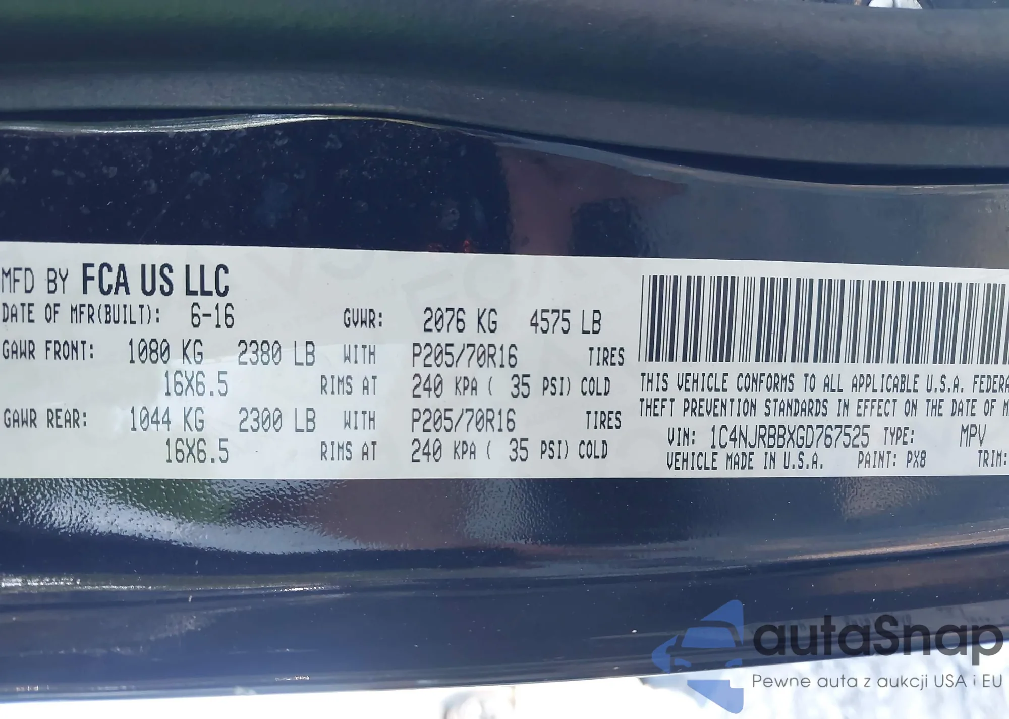 LOT: 43197680 VIN: 1C4NJRBBXGD767525