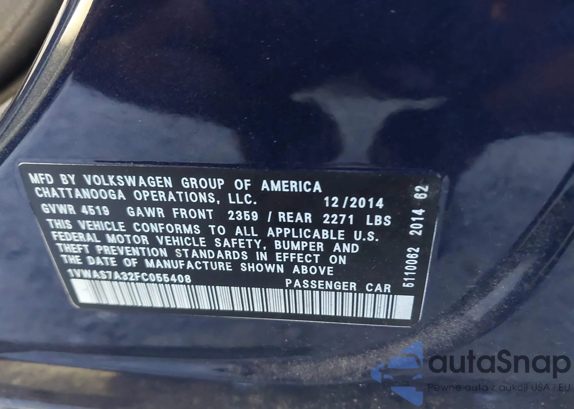 LOT: 43253963 VIN: 1VWAS7A32FC055408