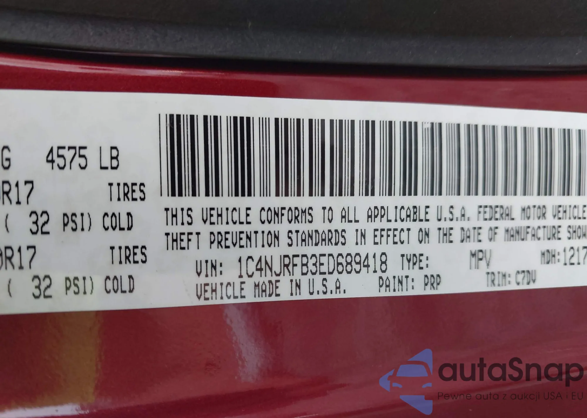 • VIN 1C4NJRFB3ED689418