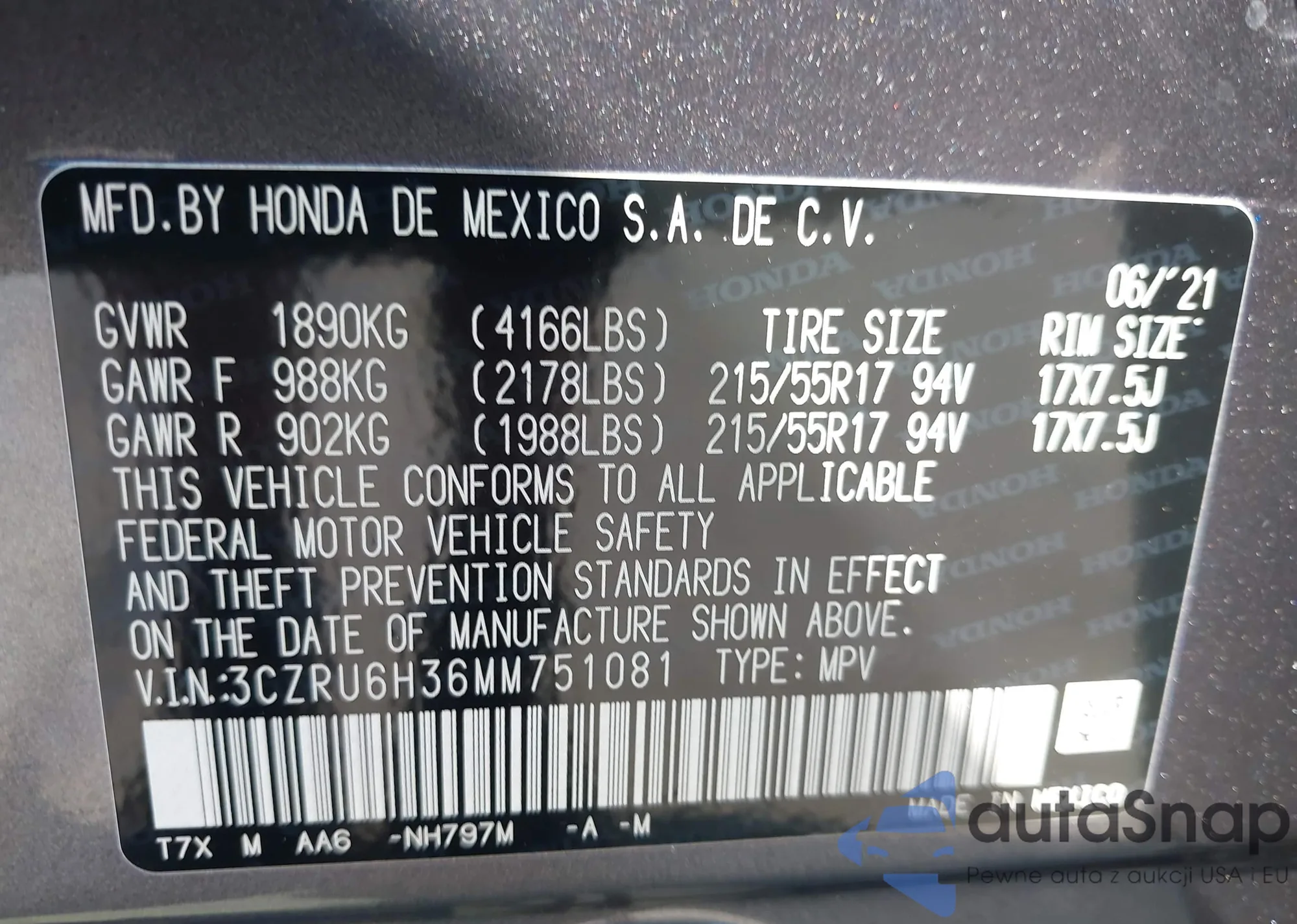 • VIN 1C4RJFAG8MC655644