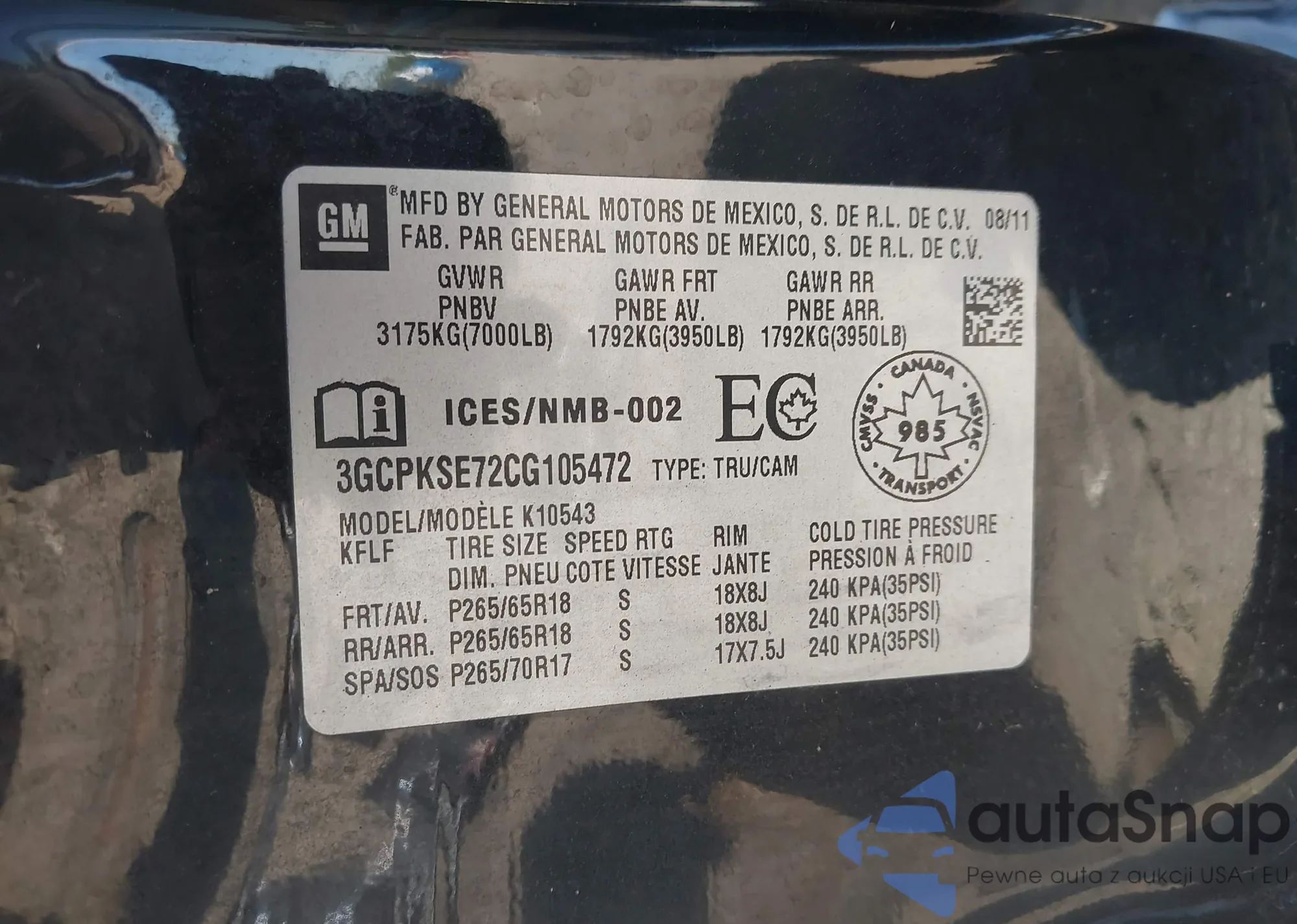 LOT: 43146667 VIN: 3GCPKSE72CG105472