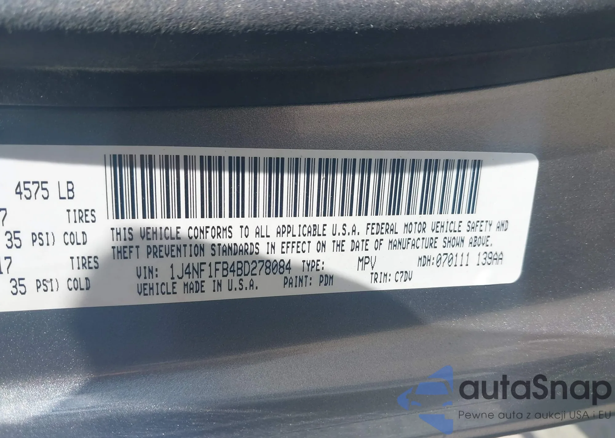 • VIN JTMBK4DV9B5104024