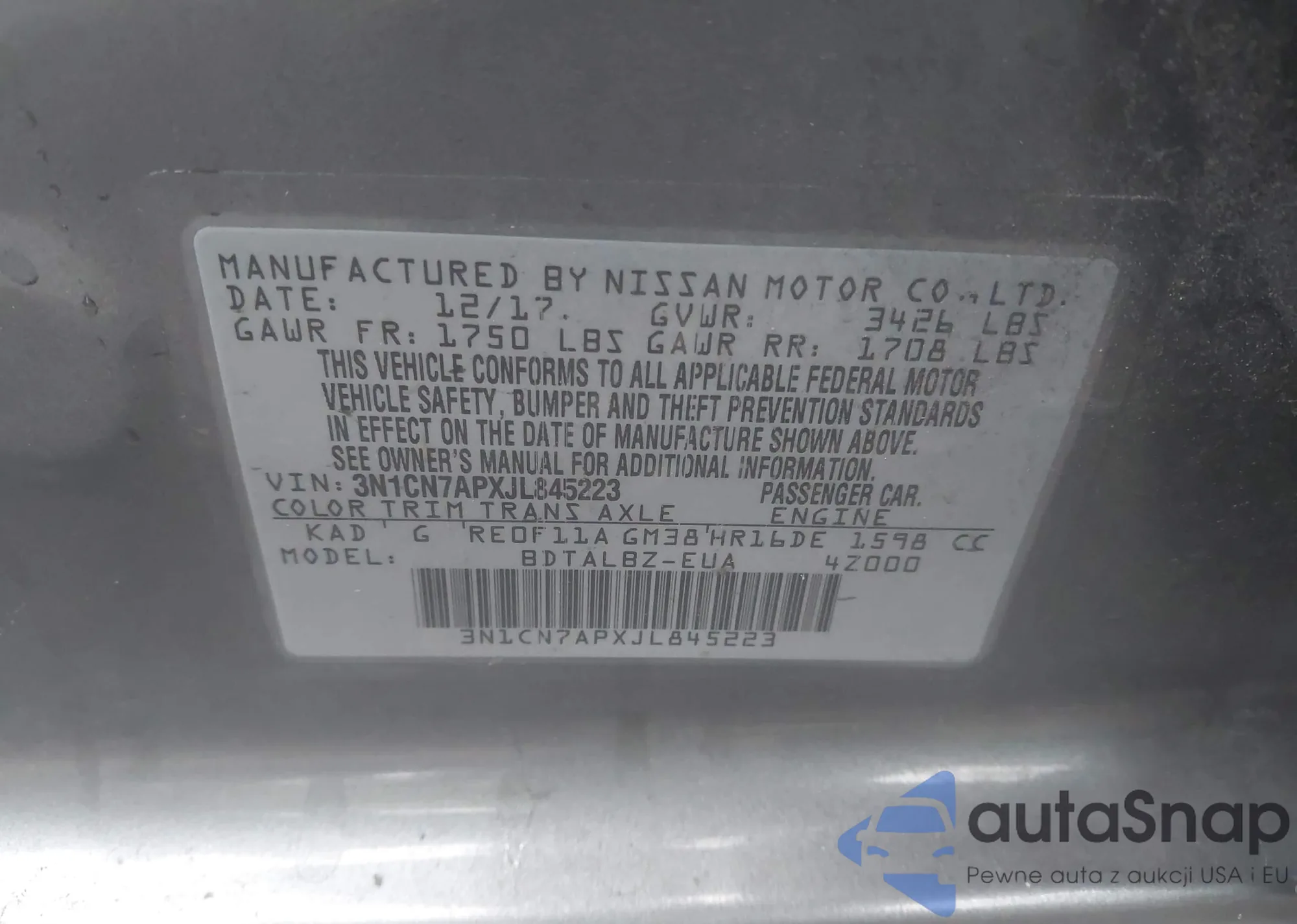• VIN 3N1CN7APXJL845223