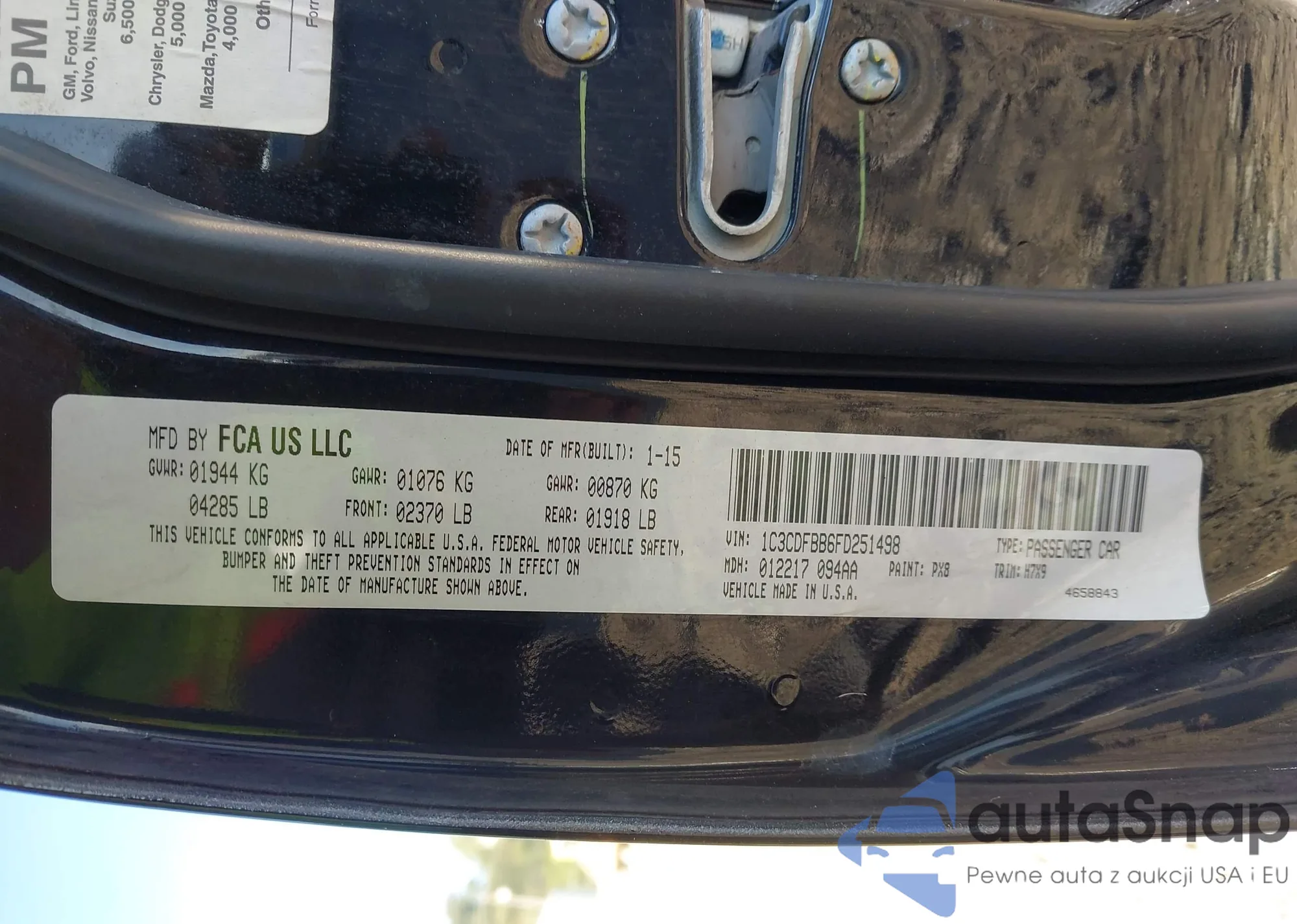 LOT: 43201749 VIN: 1C3CDFBB6FD251498