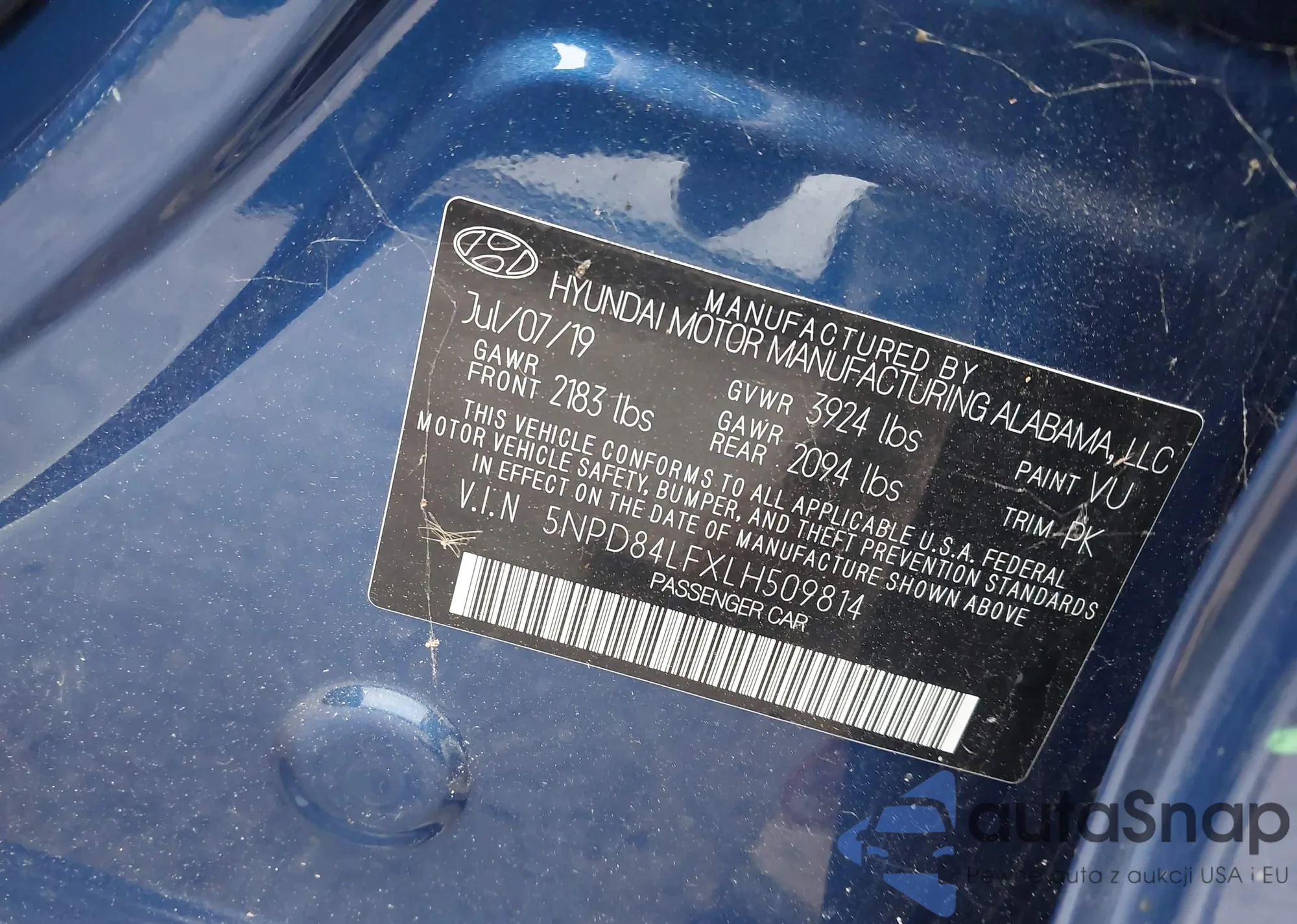 • VIN 5NPD84LFXLH509814