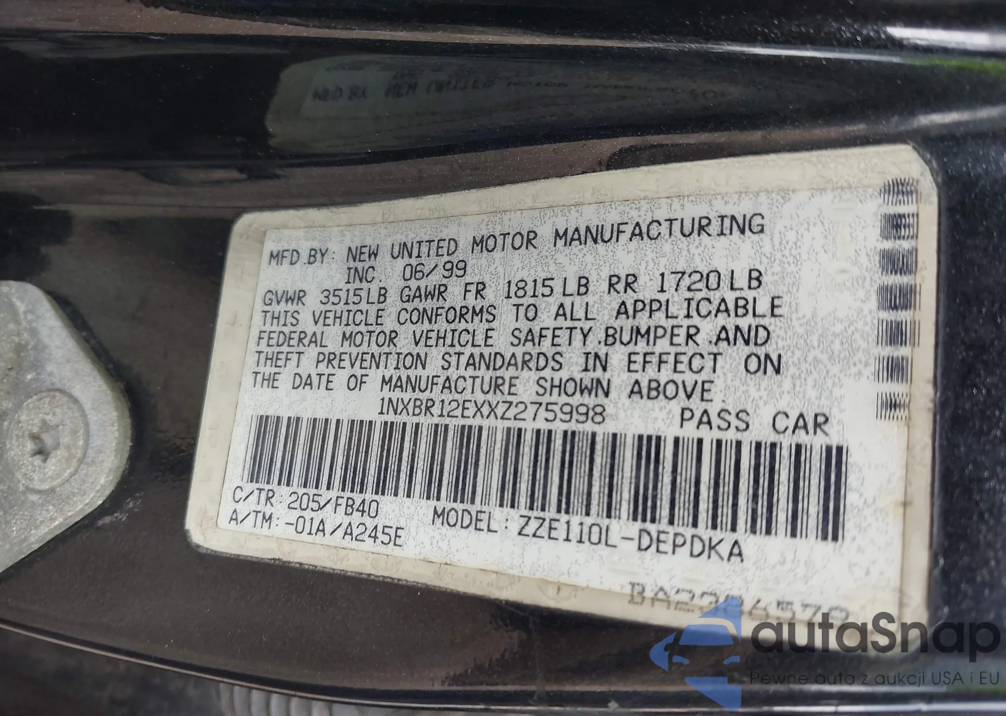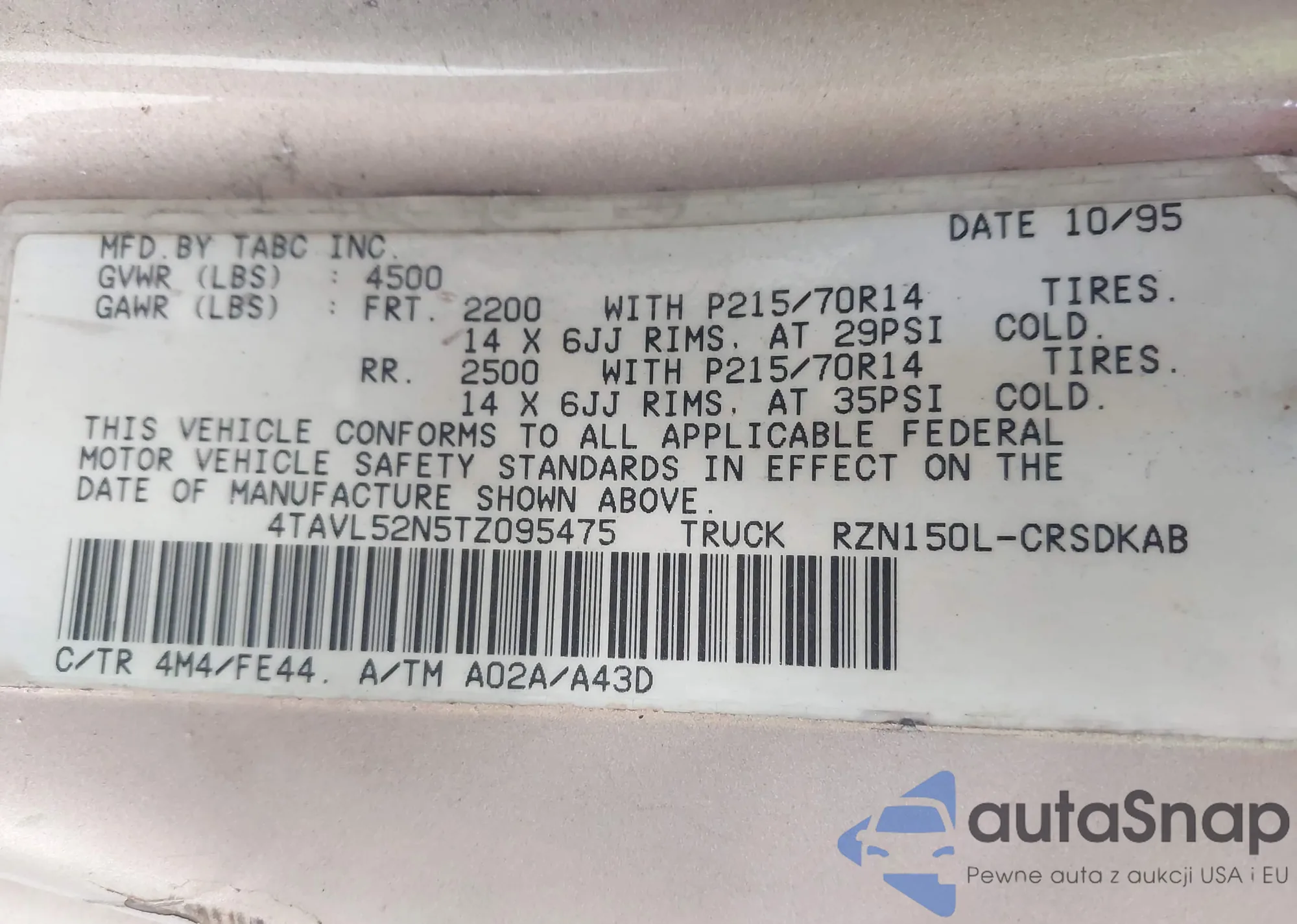 LOT: 43327987 VIN: 4TAVL52N5TZ095475