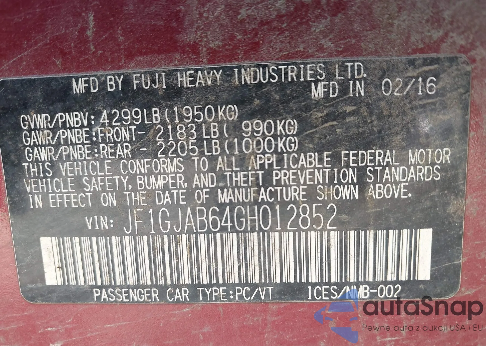 LOT: 41905287 VIN: JN8AT2MVXHW025479