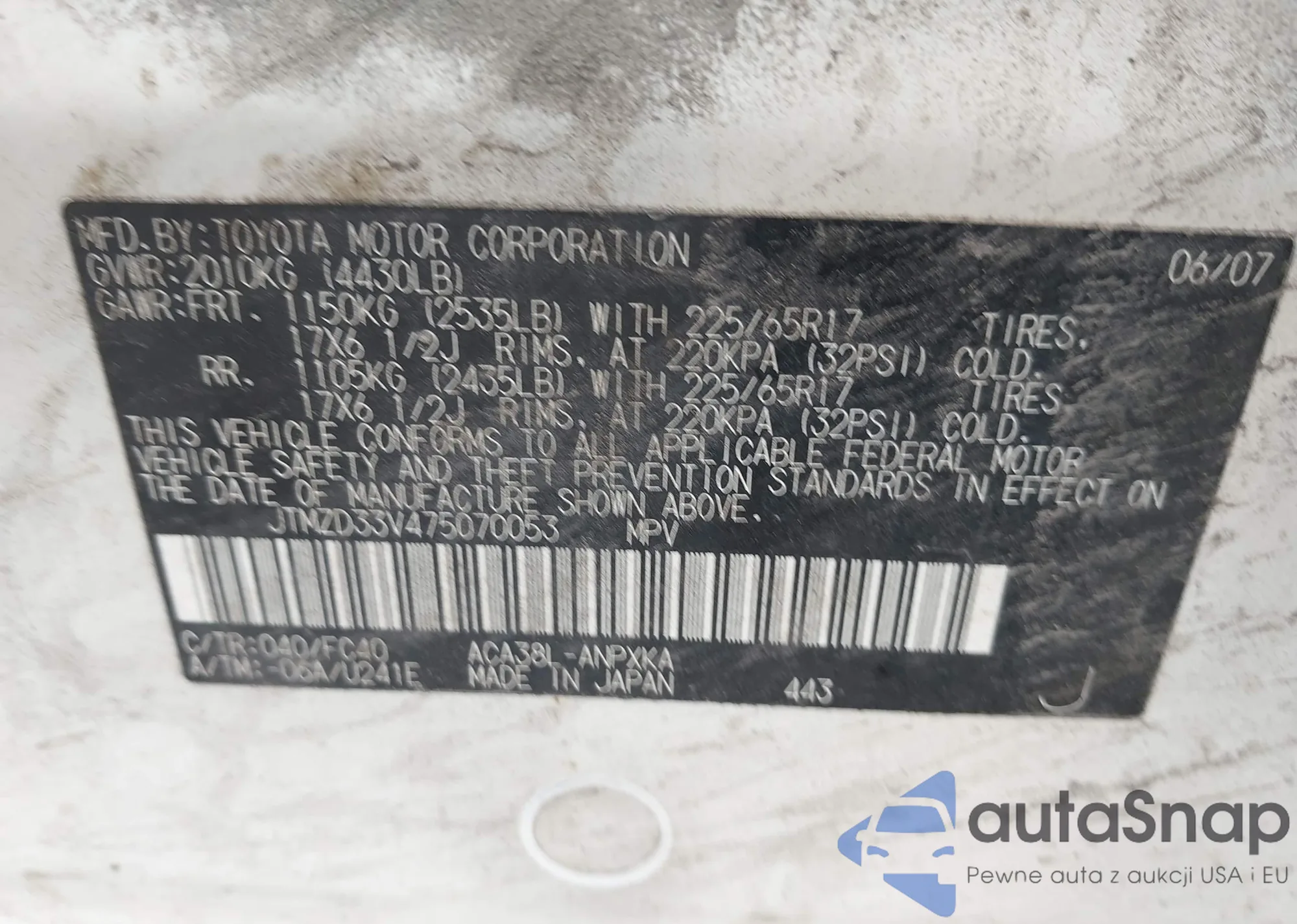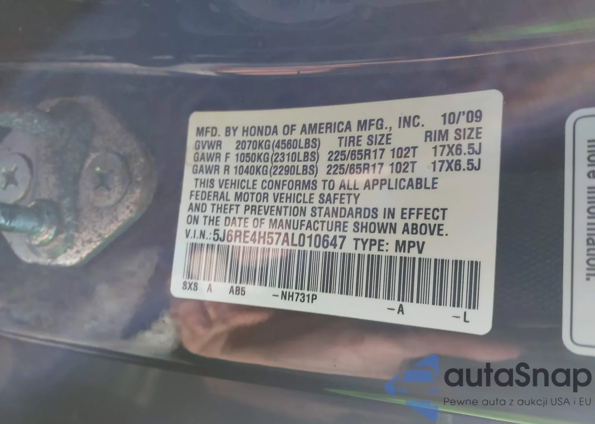 • VIN 5J6RE4H57AL010647