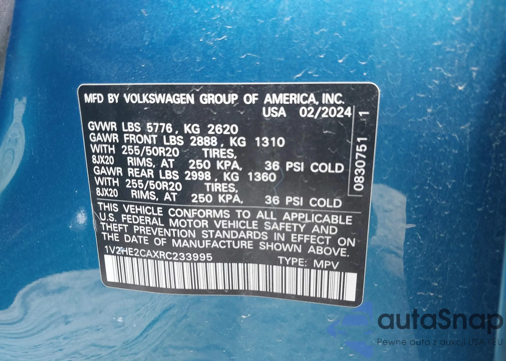 • VIN 1V2HE2CAXRC233995