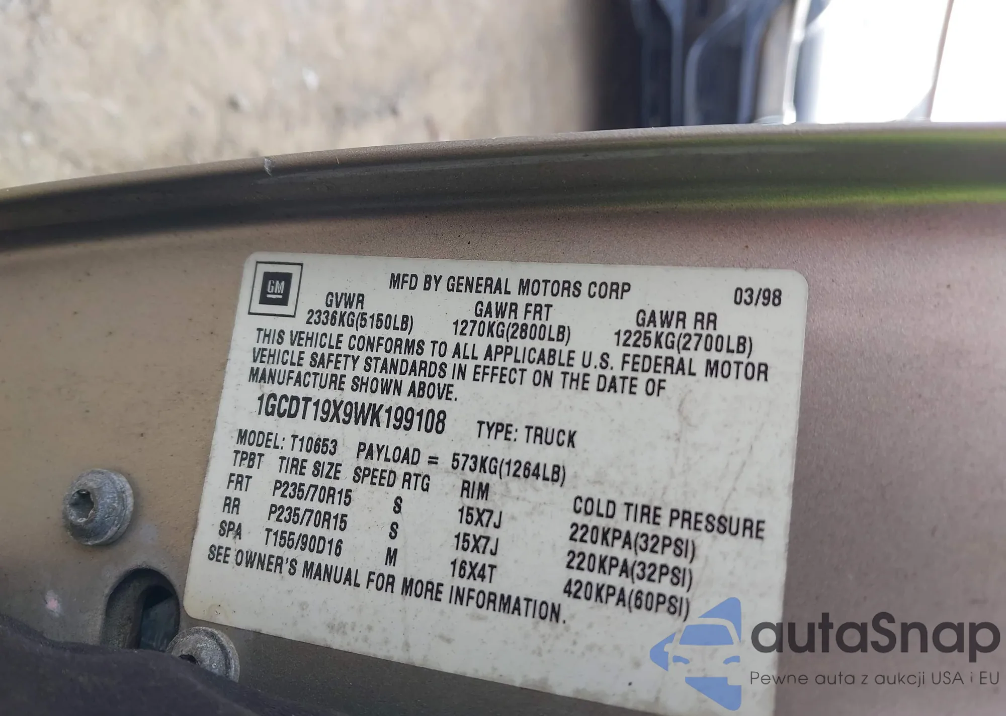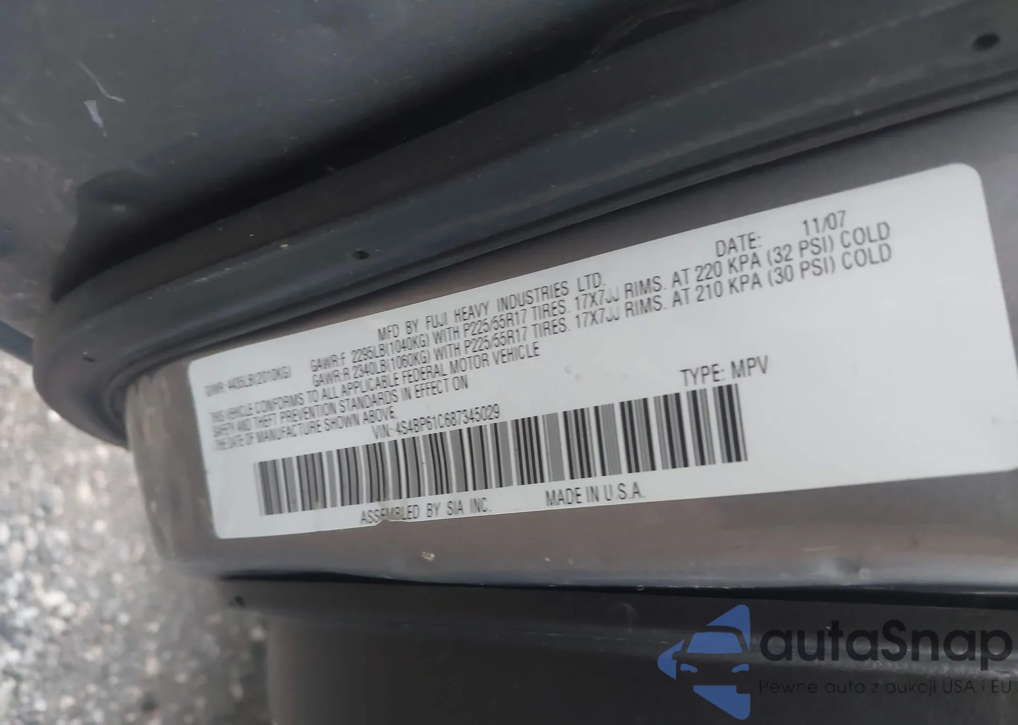• VIN 4S4BP61C687345029