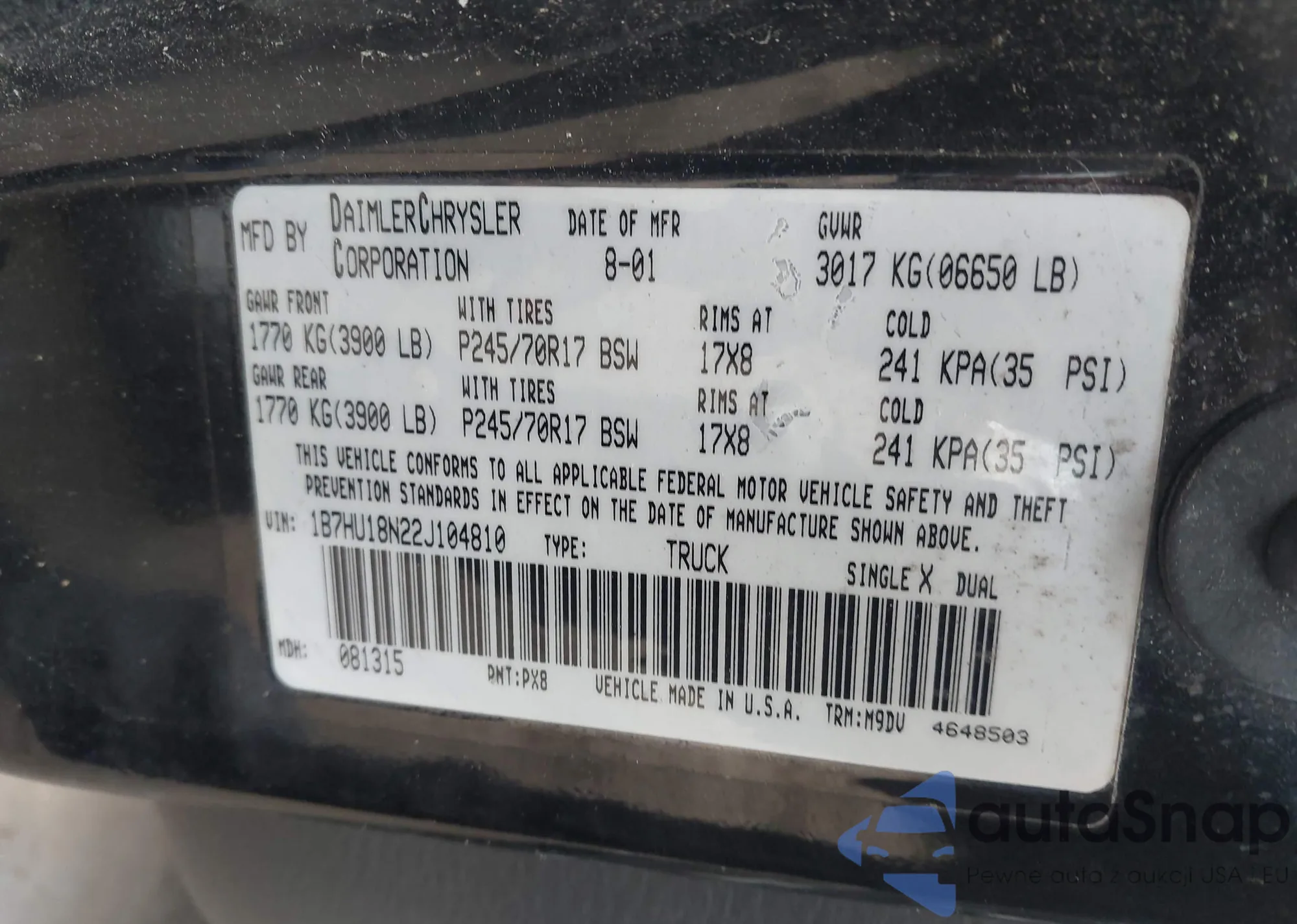 2002 Dodge Ram 1500 St z USA, uszkodzony, nr VIN 1B7HU18N22J104810
