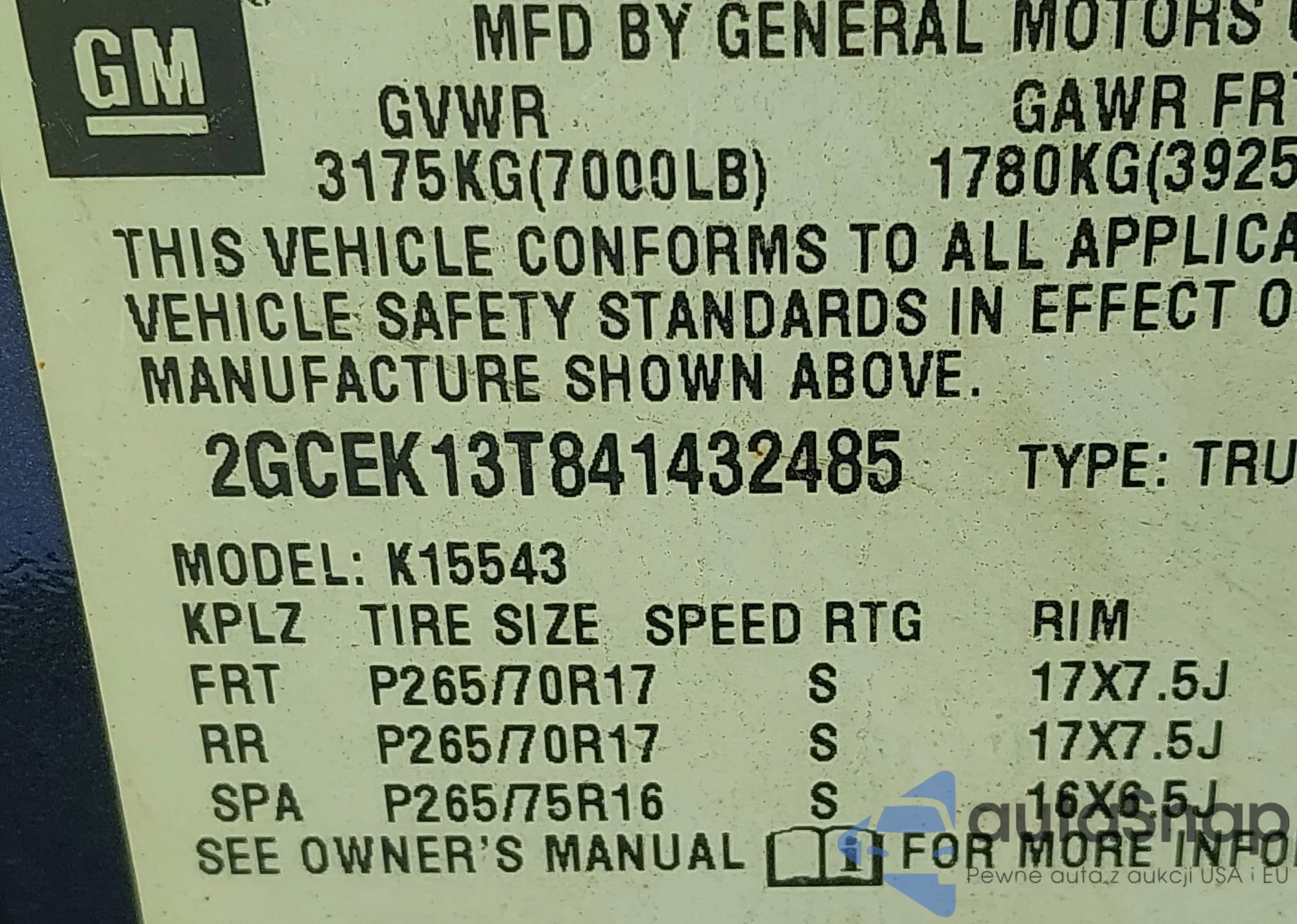 LOT: 43389699 VIN: KNAFK4A68F5292407