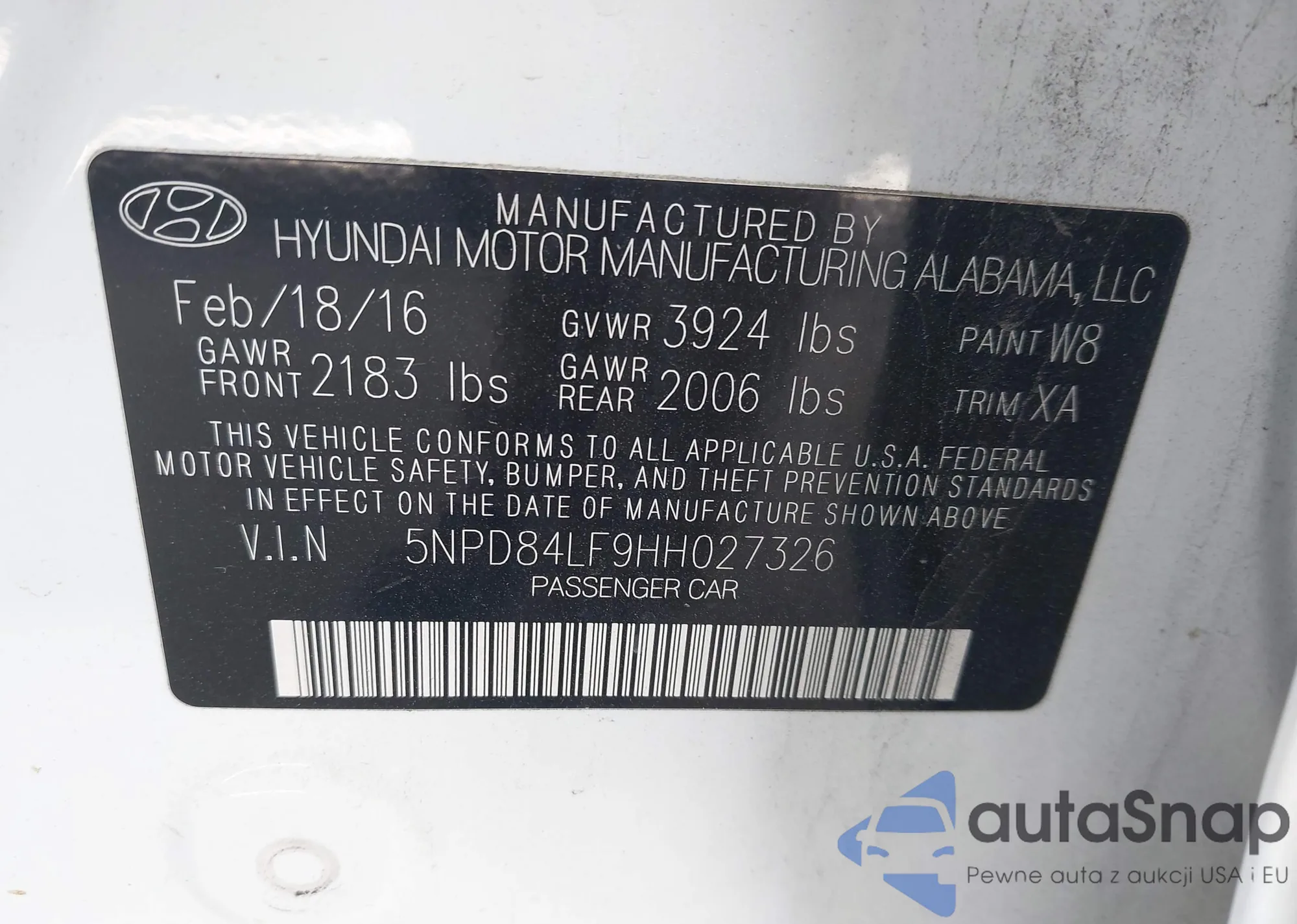 • VIN 5NPD84LF9HH027326