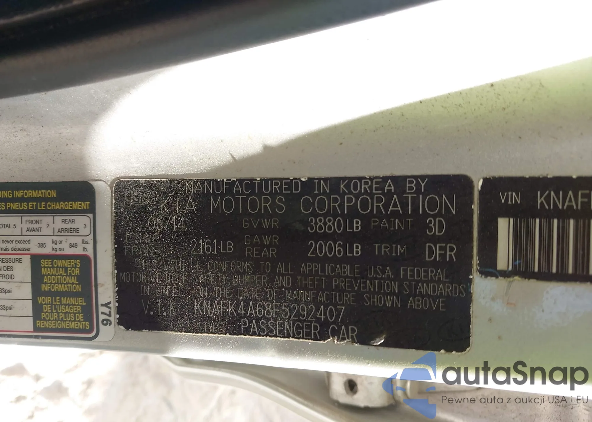 • VIN KNAFK4A68F5292407
