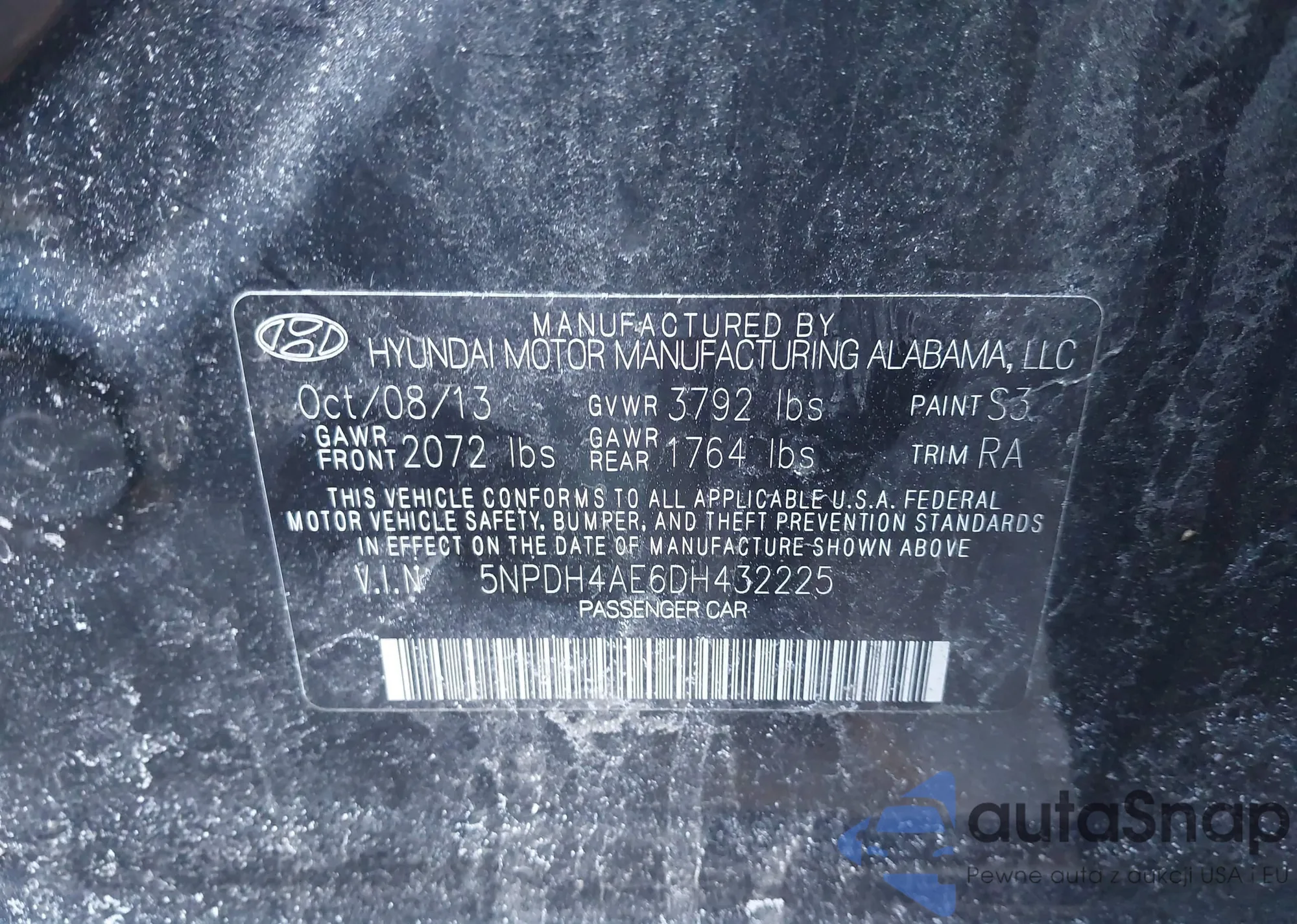 • VIN 5NPDH4AE6DH432225