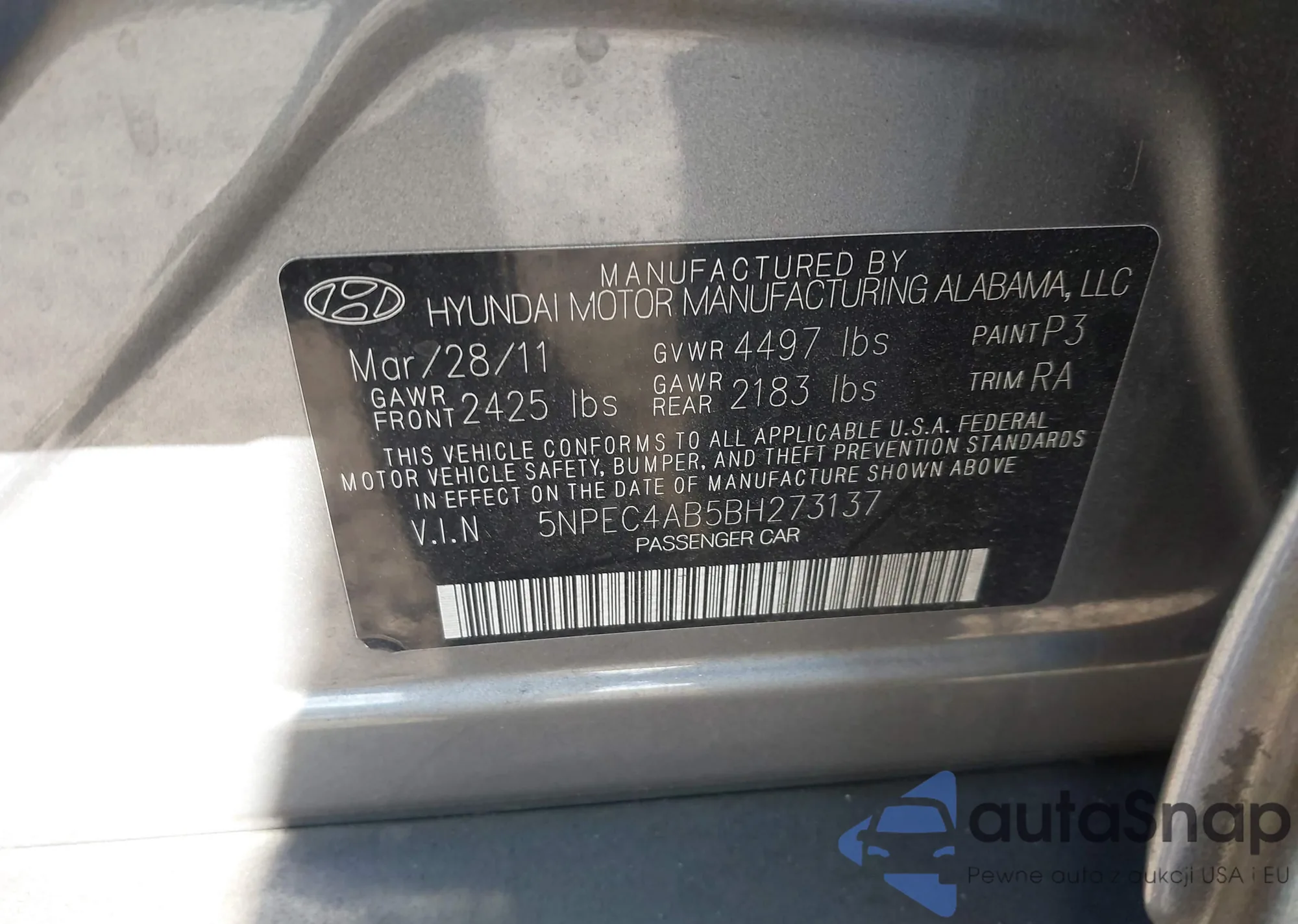 • VIN 5NPEC4AB5BH273137
