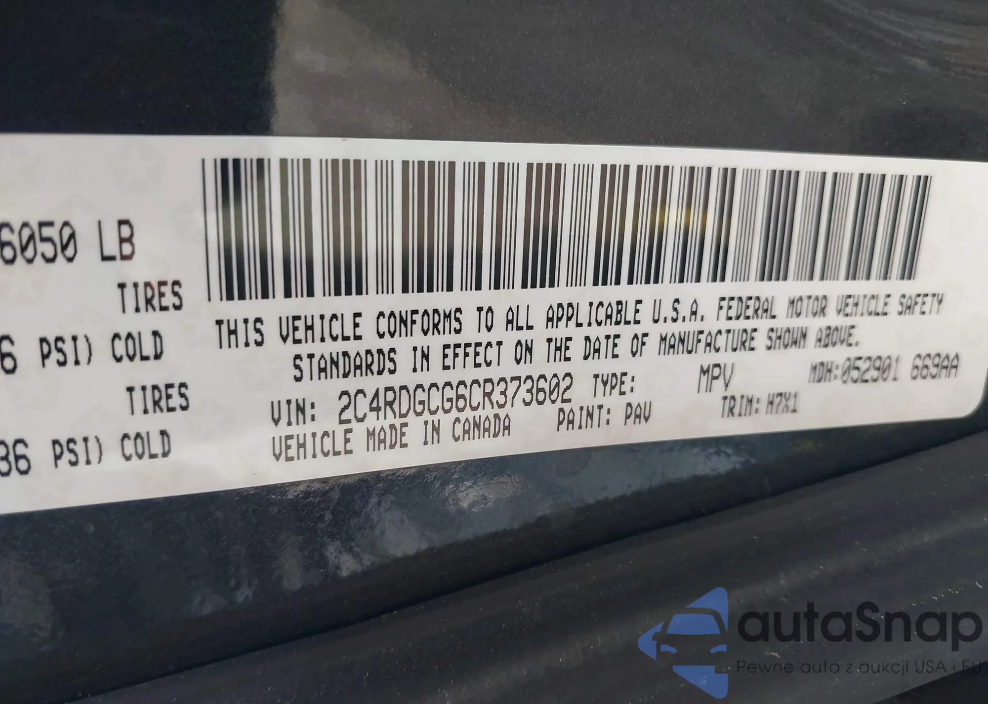 • VIN 2C4RDGCG6CR373602